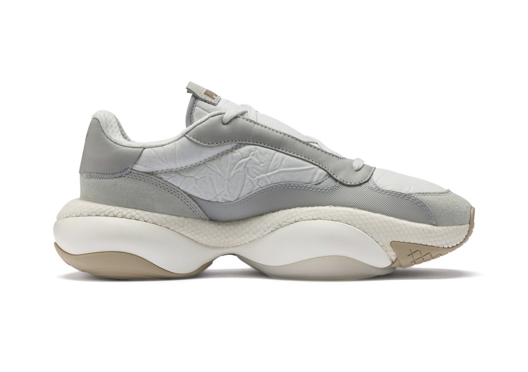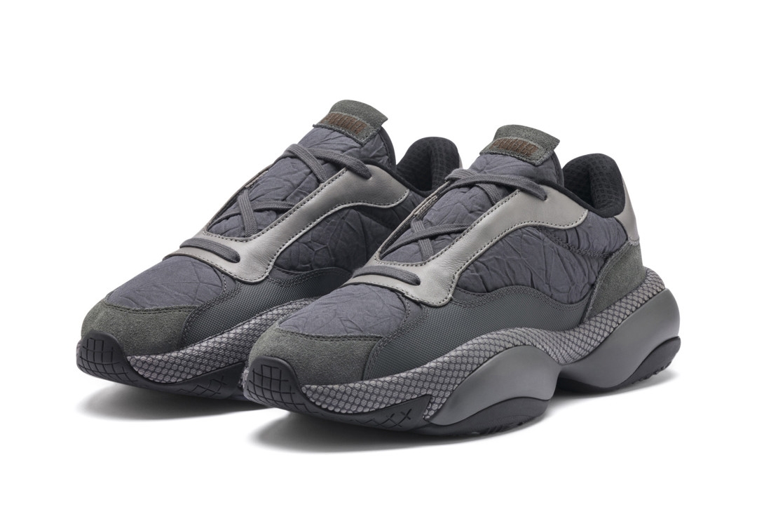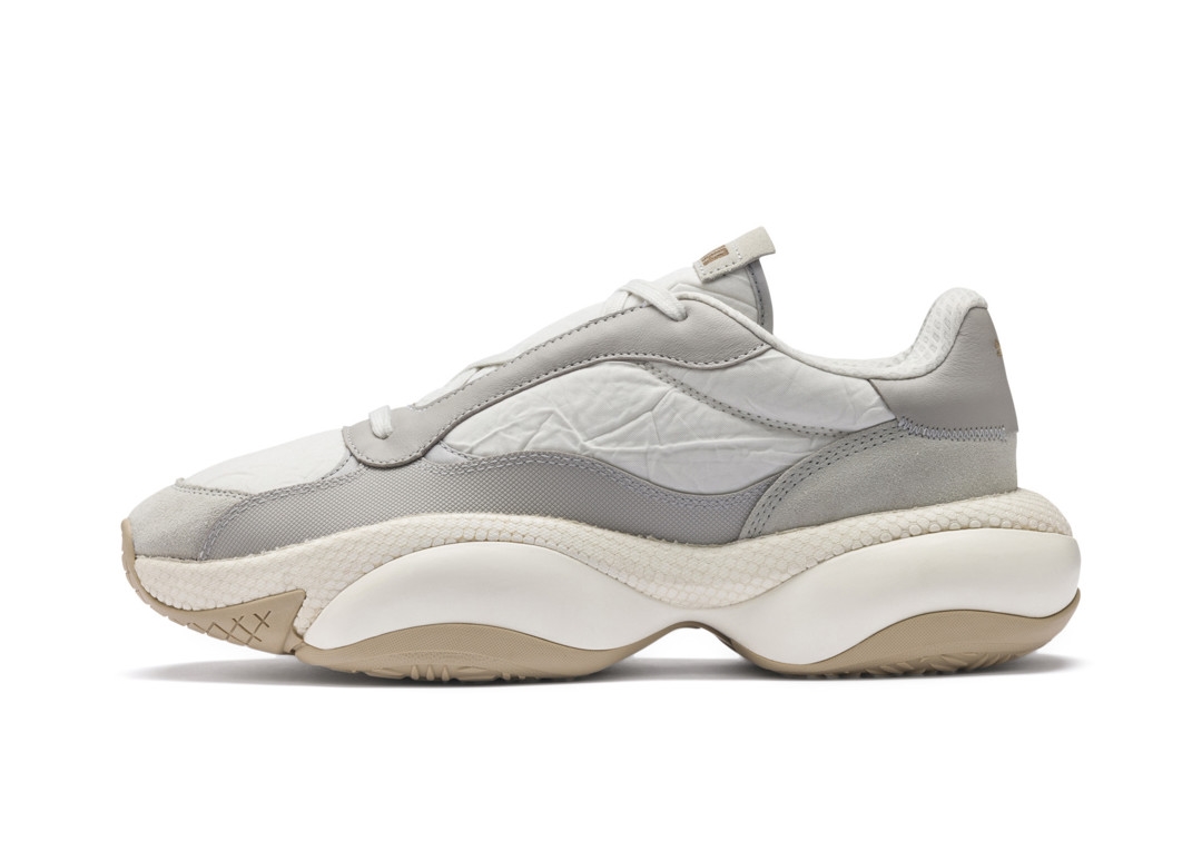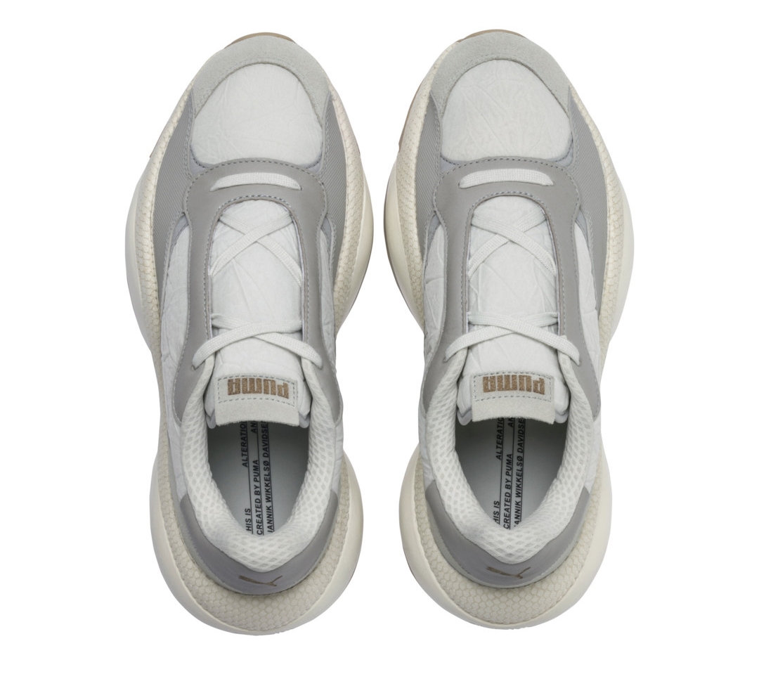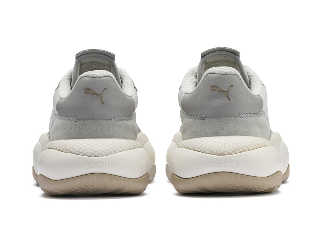 プーマのテクノロジー、ランニングシステムを現代風に再開発したR-Systemをミッドソールに採用し、EVAとPU素材のミッドソールは柔軟性、耐久性、安定性に優れ、スポーツブランドならではの機能性を持ち合わせつつ、ネットラップド加工は大胆なソールにファッション性を加えます。