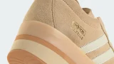 スエードアッパーを使ったフォーラム ロー CL。このローカットのフォーラムは、リュクスな素材とメタリックゴールドのアクセントで程よいレトロ感を兼ね備えた一足。ガムラバーのアウトソールが、快適な履き心地とクラシックなルックスを提供しタンの「Designed in LA」やトレフォイル、3ストライプなど、シグネチャーディテールで仕上げています。