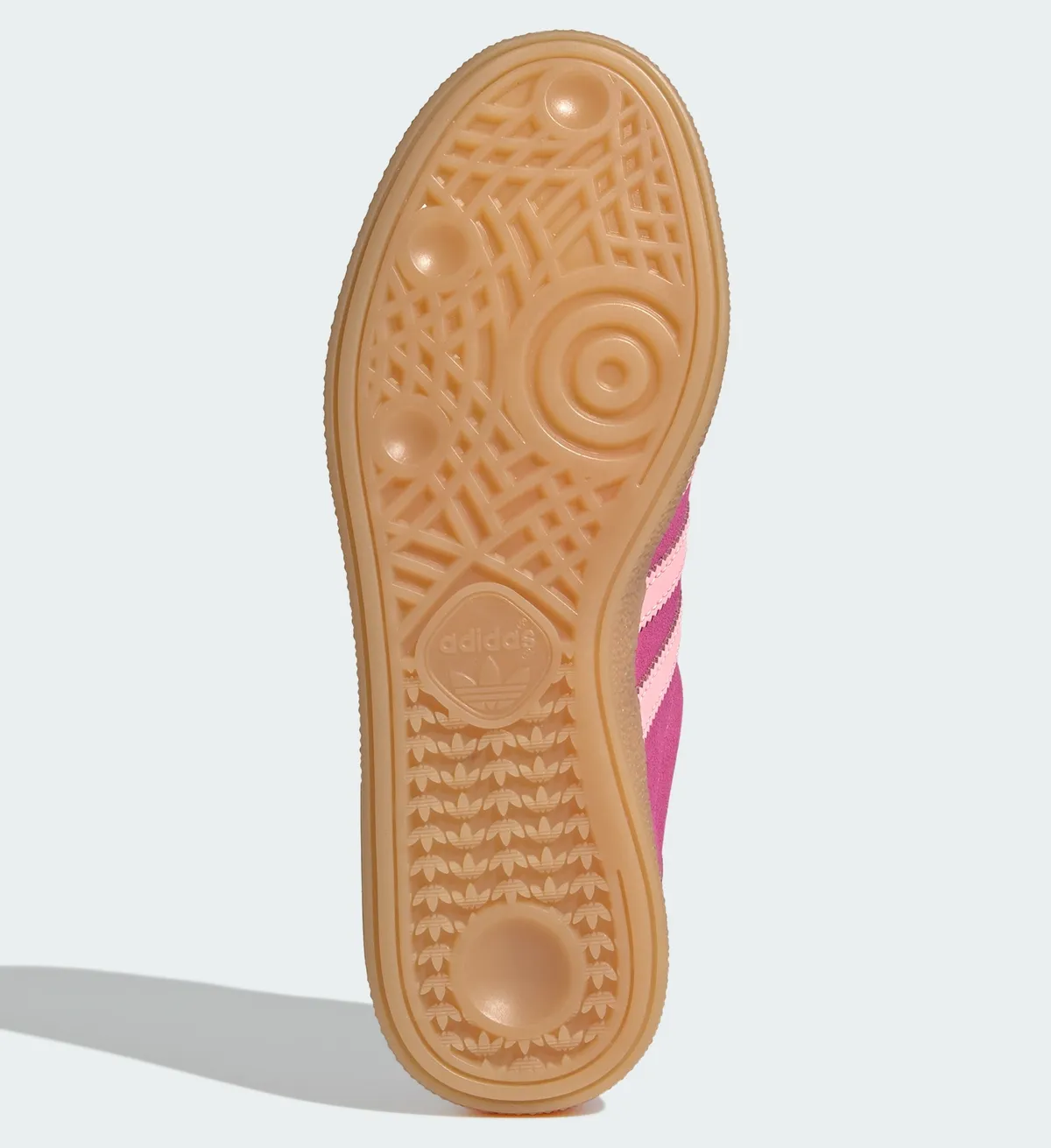 素材には滑らかなスエードを採用。シュータンやインソール、シューレースに至るまで統一されたピンクのグラデーションが足元を強調しながらもガムラバーソールが全体を落ち着かせる役割を担っています。このガムソールは半透明の琥珀色でクラシックな雰囲気を漂わせつつ視覚的な温かみをプラスしています。さらにアウトソールには独自のパターンが刻まれレトロな印象と機能性を同時に感じさせます。