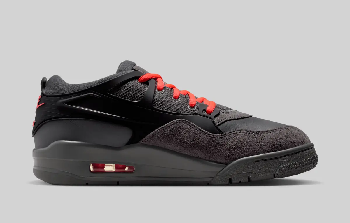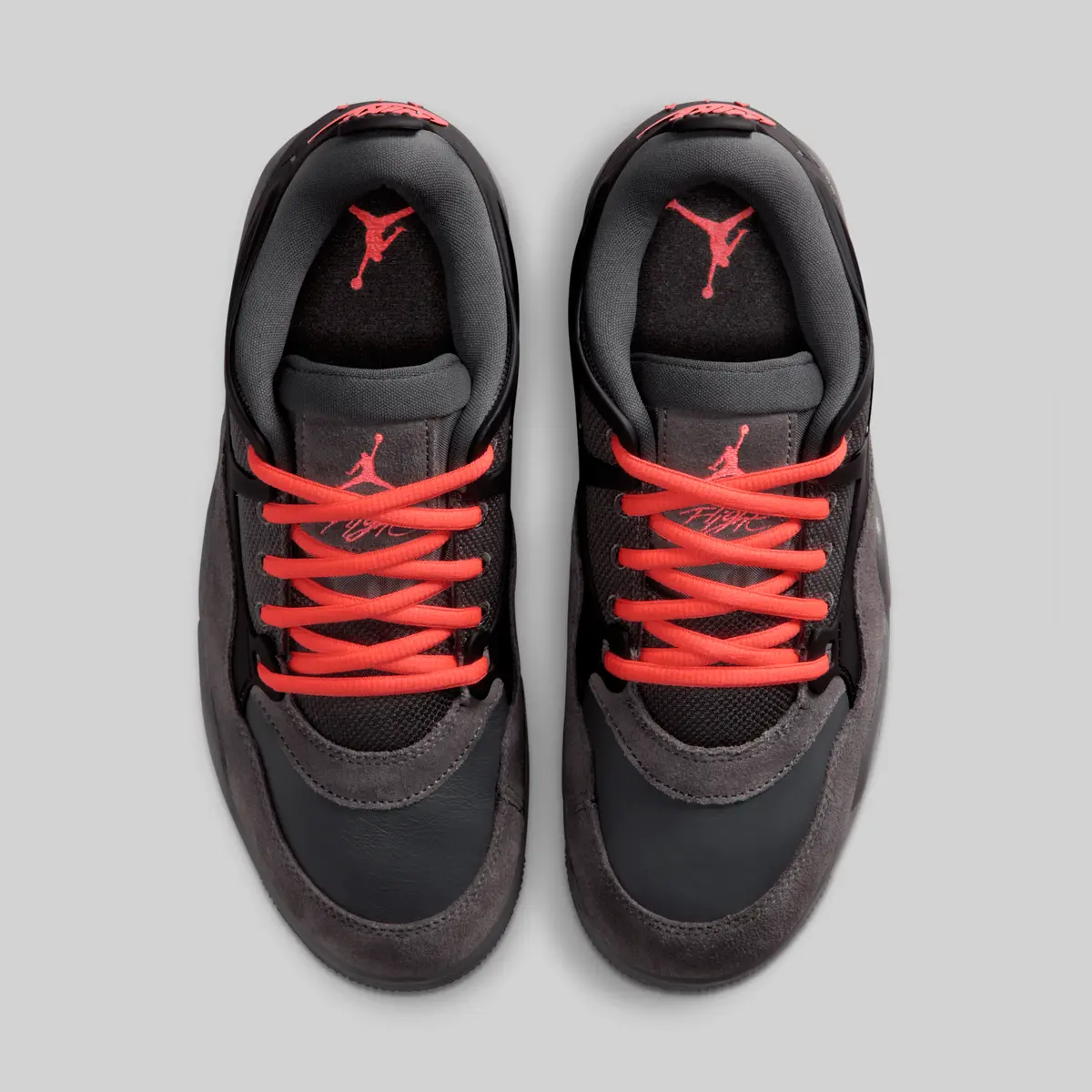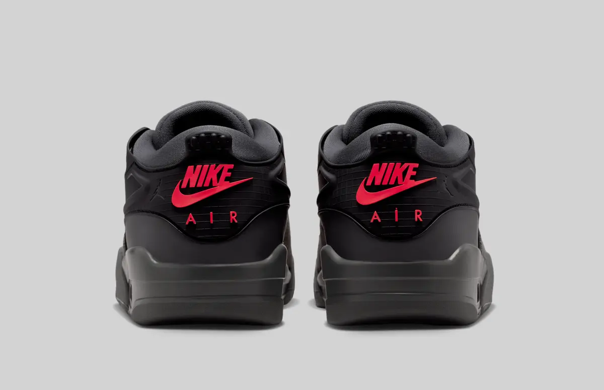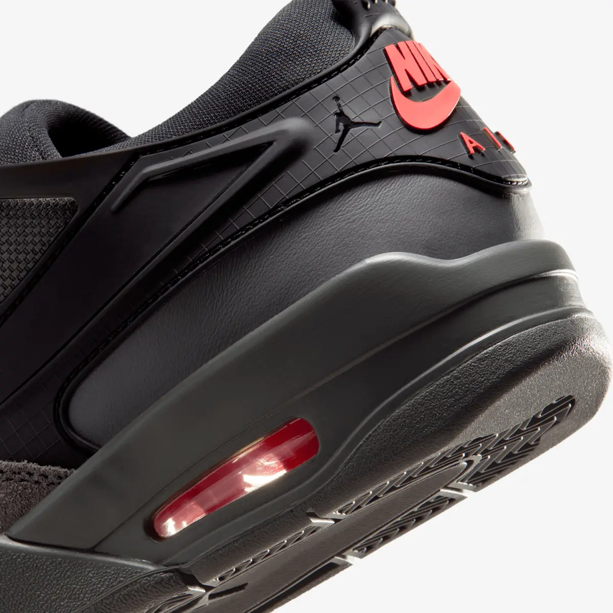 ミッドソールはボリュームのあるブラックでまとめら、その中にエアユニットが覗きます。アウトソールは耐久性に優れたラバー仕様で中央に刻まれたジャンプマンロゴがシリーズの系譜を力強く主張します。ローカットならではの軽快なシルエットと、重厚なソールの存在感が絶妙なバランスを描いています。