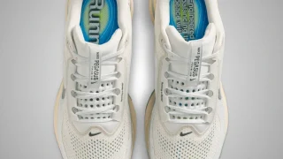 アッパーは清潔感のあるホワイトを基調とし流れるようなリブ状のアレンジパターンが軽やかな動きを演出しています。その純白のキャンバスを引き締めるのがソールからサイドパネルにかけて広がるブラックのアクセントです。ブラックはただの無地ではなく光沢を帯びた質感があり角度によって印象が変化するためシンプルながらも奥行きのあるデザインに仕上がっています。