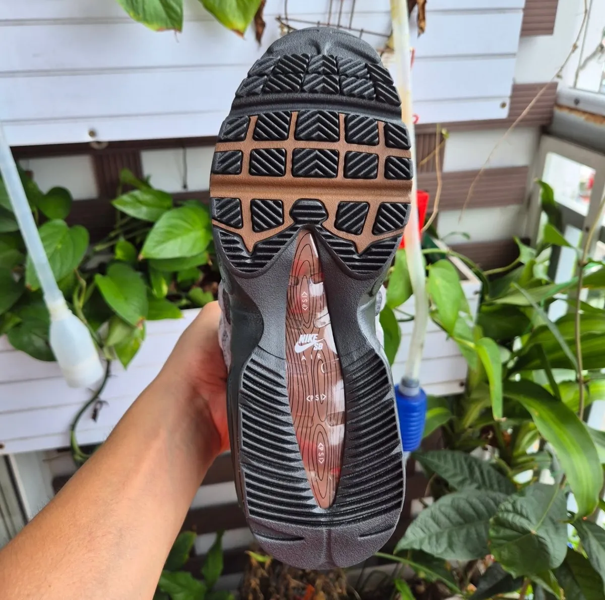 シュータンには「air max」の刺繍ヒール部分には「Nike SB」のロゴが刻まれ、両者のアイデンティティが交差するディテールとなっています。ランニング由来の未来的なシルエットとスケートカルチャーを意識した実用性が見事に溶け合った仕上がりです。