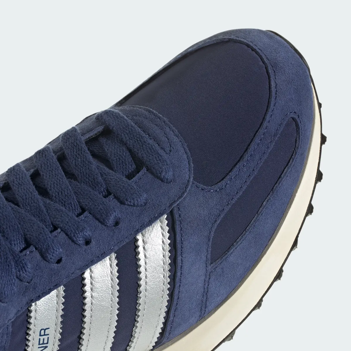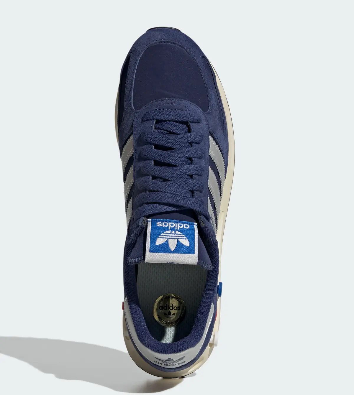 一方オフホワイトとダークマリンのコンビネーションは爽やかさと懐かしさを同居させています。ナイロン素材のクリスタルホワイトが軽やかに輝きグレートーンのスエードオーバーレイが全体に柔らかい陰影を与えます。そこに差し込まれるダークマリンのストライプとシューレースが静かな中に力強さを秘めたコントラストを生み出しています。レトロでありながらモダンに映るその仕上がりはランニングカルチャーとカジュアルスタイルを軽やかに結びつける一足です。