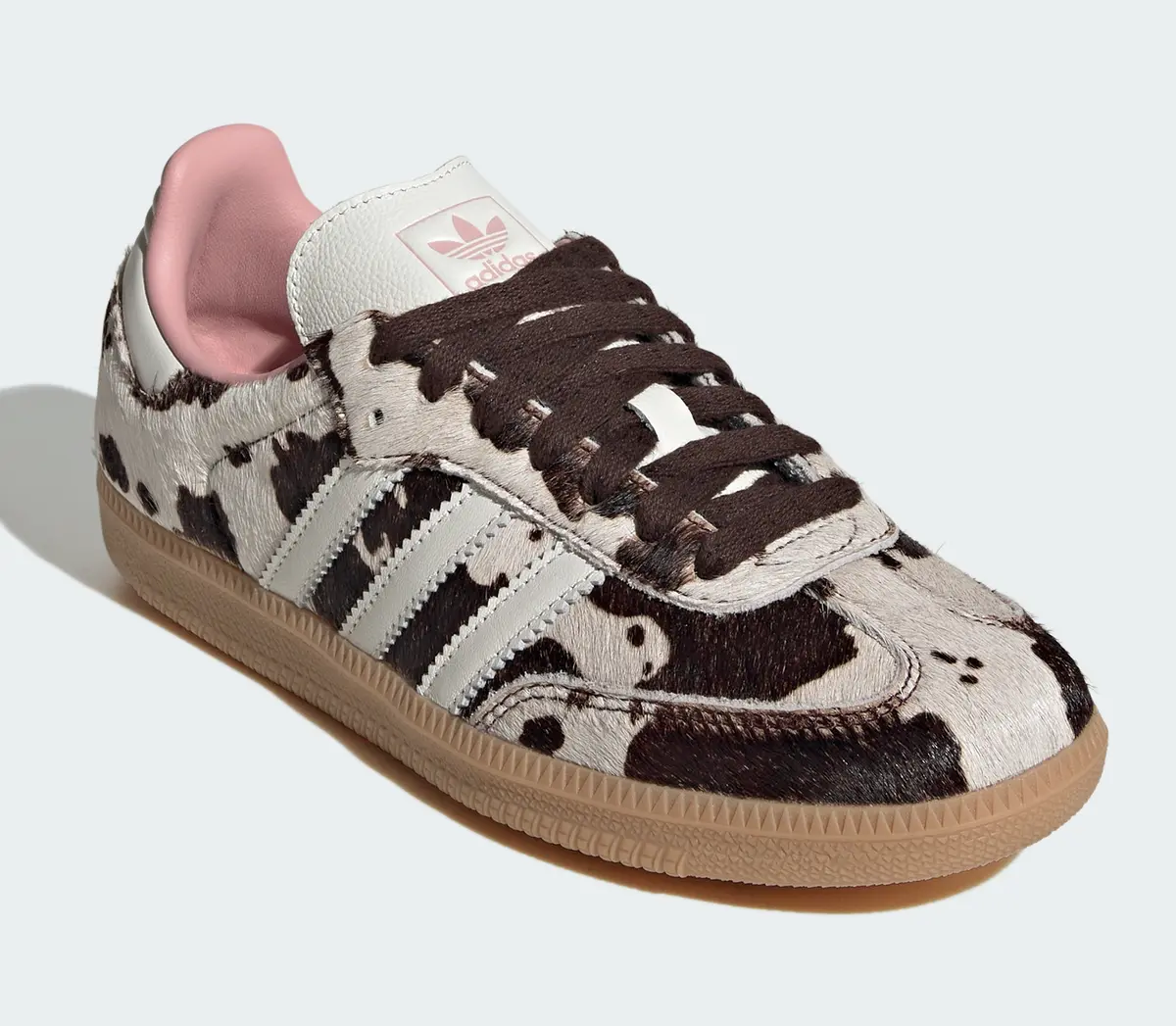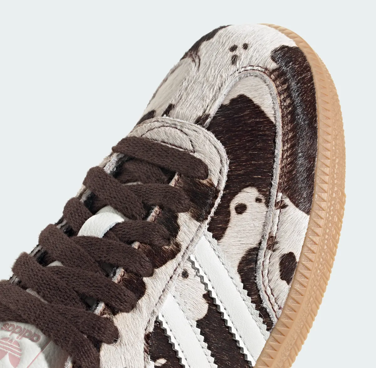 このモデルの背景には1950年代にインドアサッカー用シューズとして誕生した「サンバ」の長い歴史があります。スポーツシーンからファッションシーンへと舞台を広げ時代を超えて進化を遂げてきた「サンバ」は今やアディダスを代表する定番のひとつです。そのレガシーを基盤にしながらもこの「カウ プリント」バージョンは型破りなデザインで新しい価値観を提案しているのです。