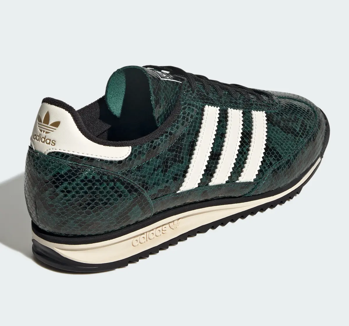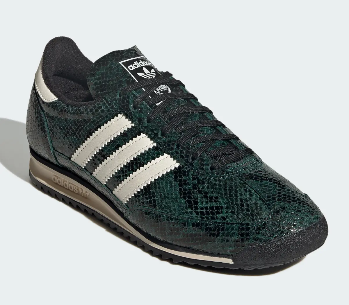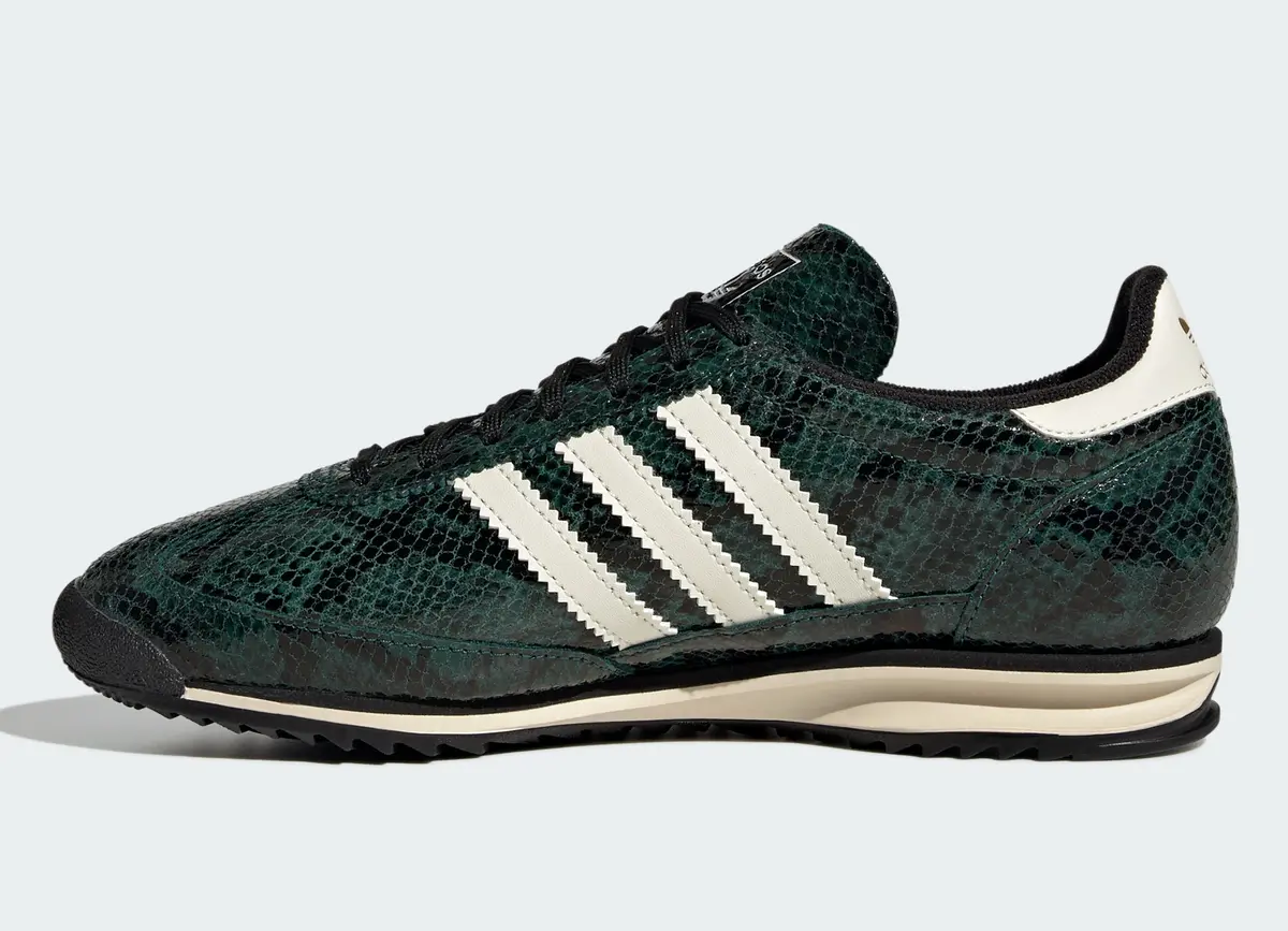 スネークスキンをまとった特別仕様の「アディダス オリジナルス SL 72 OG スネークスキン」は、ひと目で惹きつける存在感を放つ一足です。