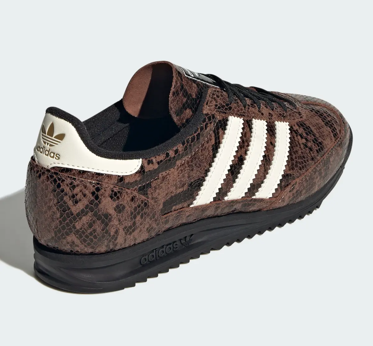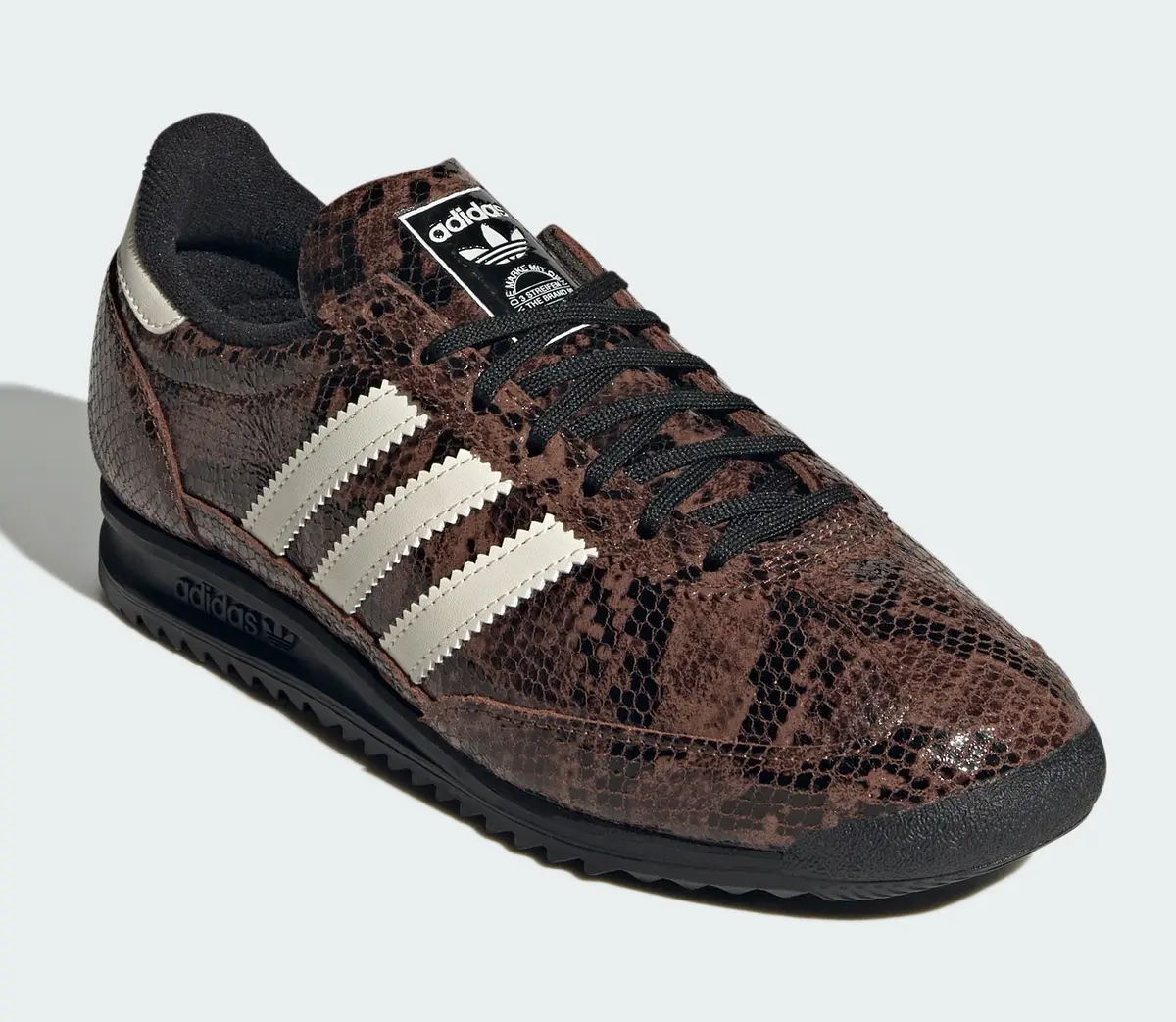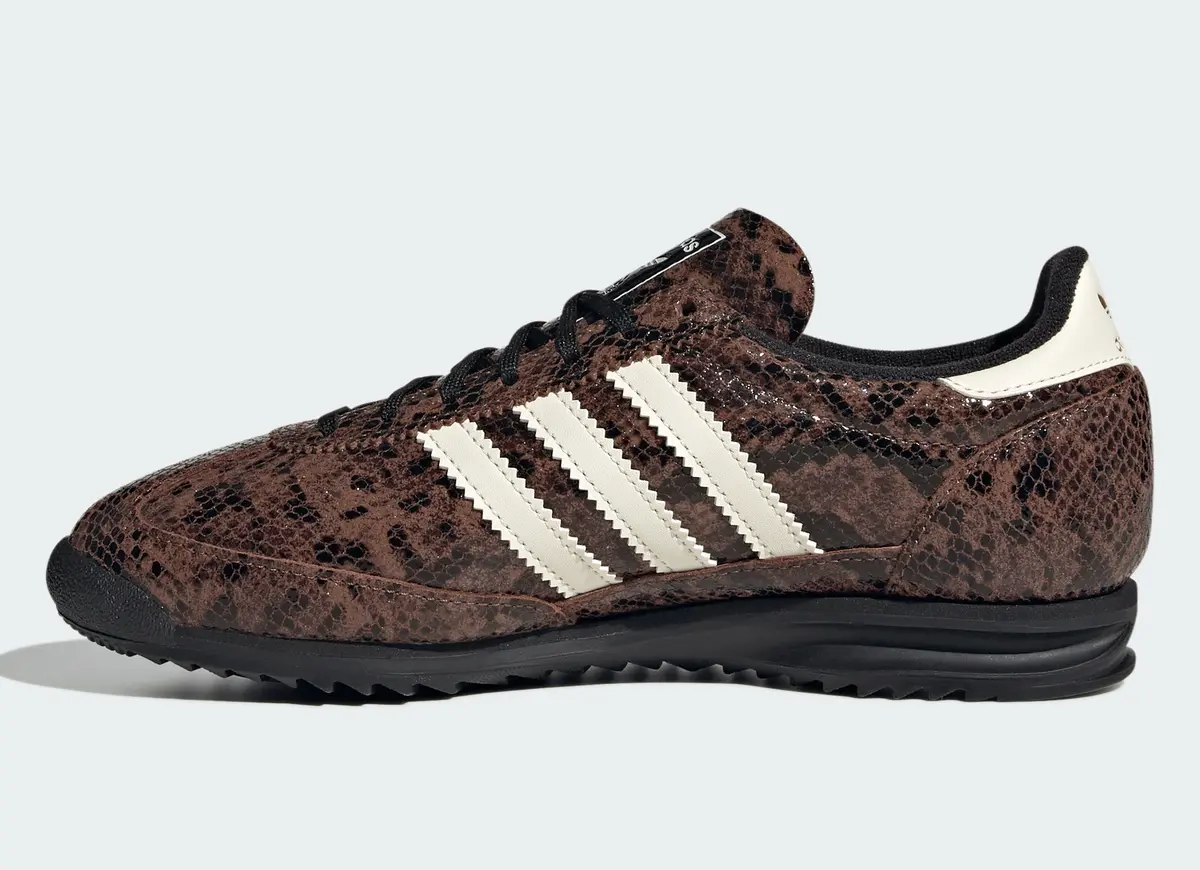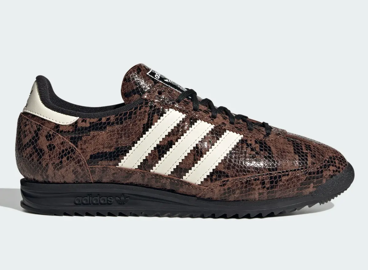 「アディダス オリジナルス SL 72 OG スネークスキン」はブラウンとグリーンという二つの個性を軸に洗練されたスタイルとクラシックな背景を両立させています。足元からコーディネートを引き上げてくれる特別な存在となる一足です