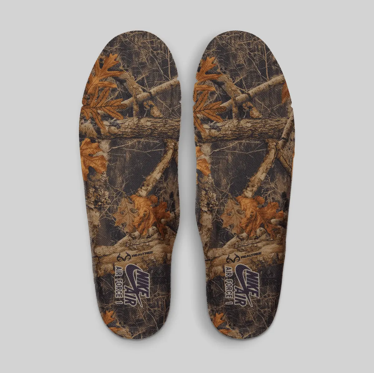 リアルツリーはアウトドアウェアやハンティングギアでおなじみのカモフラージュ柄を手がけるブランドで森林や落ち葉のディテールを忠実に再現するプリント技術に定評があります。その世界観がエア フォース 1に落とし込まれることでこれまでにない新鮮な表情が生まれています。