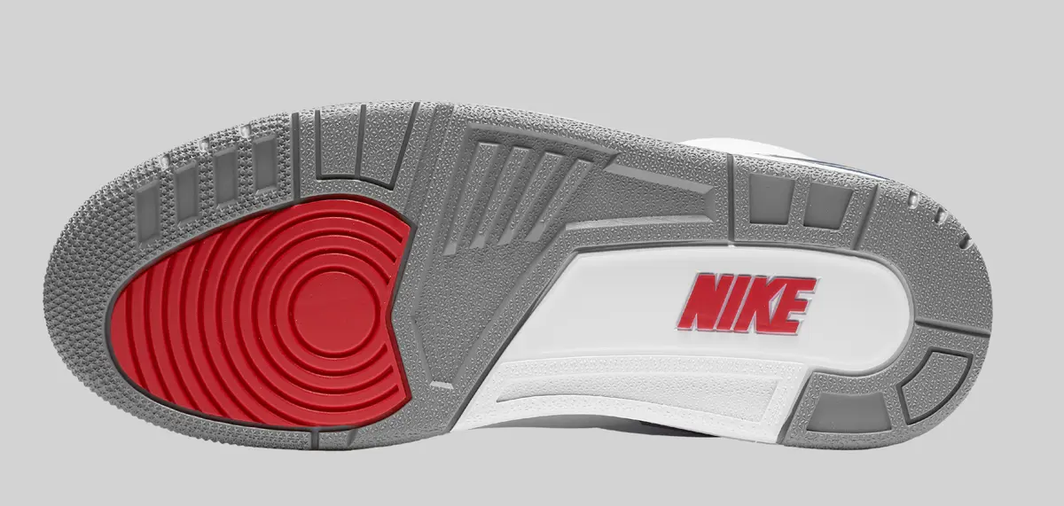 「トゥルーブルー」と呼ばれる鮮やかなブルーは、シューレースホールやライニング、ヒールパネル、ミッドソールの一部に散りばめられ白いボディに引き締まった印象を与えます。さらにシュータンの裏側には鮮烈なレッドが配置され、外側に刺繍された赤いジャンプマンロゴと響き合う構成です。ホワイト、ブルー、レッドという三色のバランスがスポーティさと上品さを兼ね備えた絶妙な調和を生み出しています。