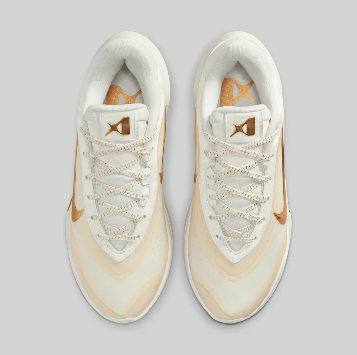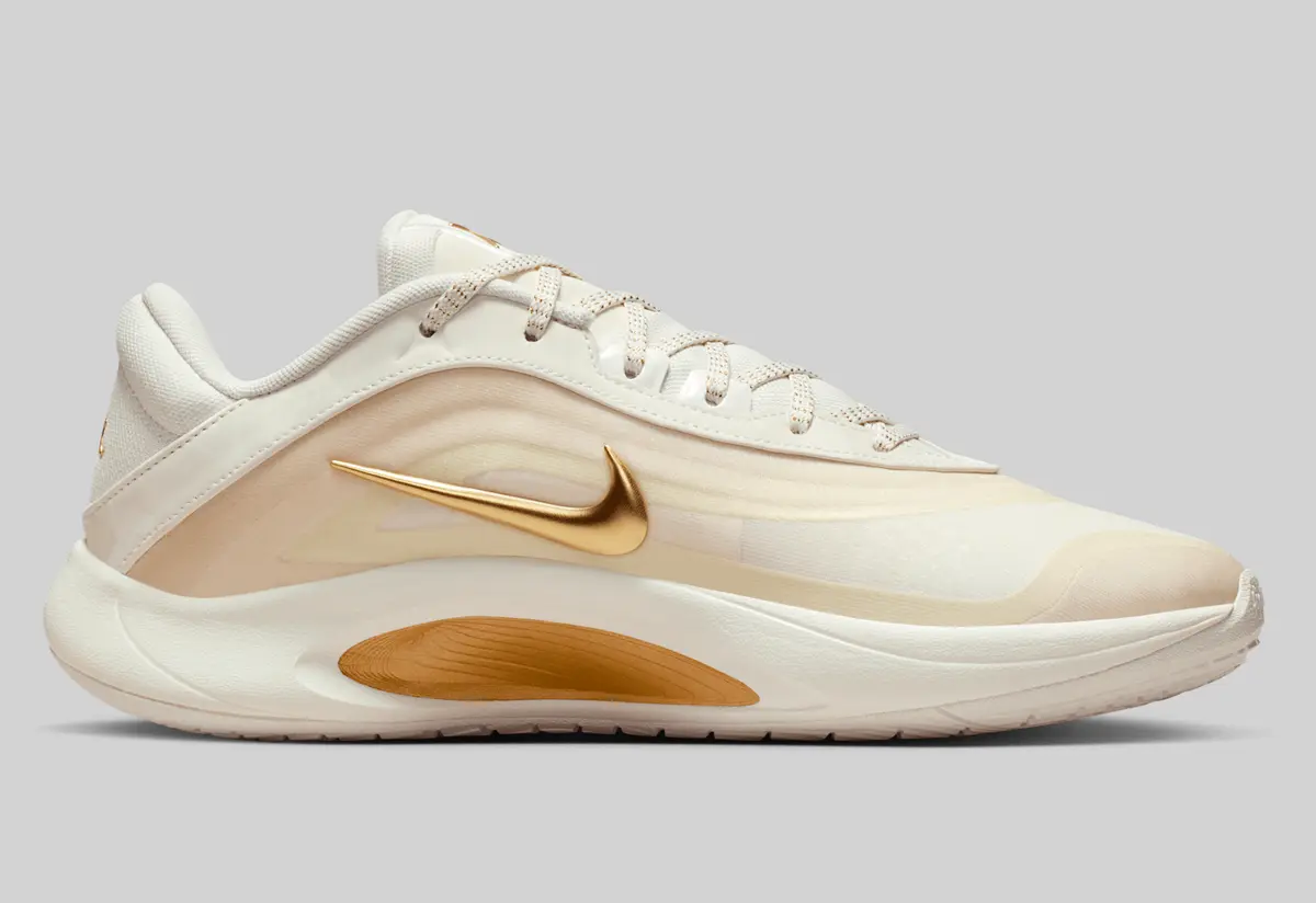 エイジャ・ウィルソンのシグネチャーモデル、ナイキ A’ONE EP セイル メタリックゴールド は洗練された配色と滑らかなシルエットで視線を奪う一足です。