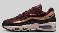 ベースとなる柔らかなセイルのトーンはまるで自然光に溶け込むような穏やかさを持ちながらサイドに走るメタリックゴールドのスウッシュが強烈な輝きを放ちます。アッパー全体は滑らかな質感のシンセティック素材とメッシュが組み合わされ繊細な陰影を描き出すことで立体的な表情を生み出しています。角度を変えるたびにゴールドの差し色が異なる存在感を示し柔らかなベースカラーとのコントラストが際立ちます。