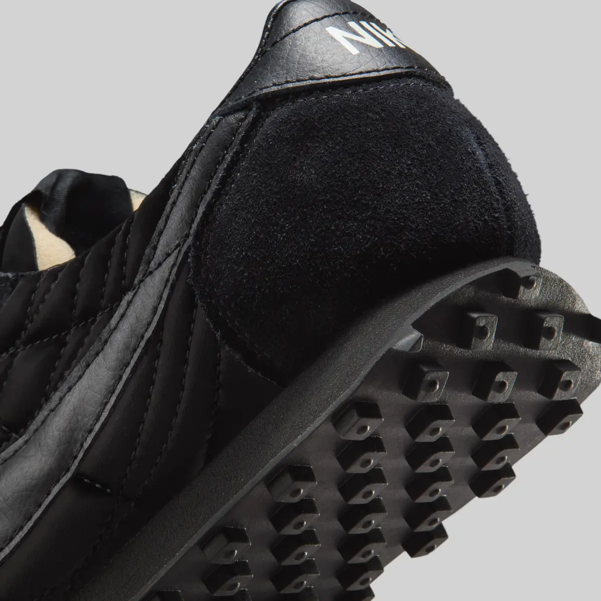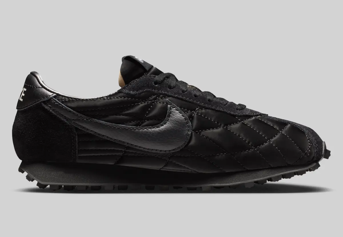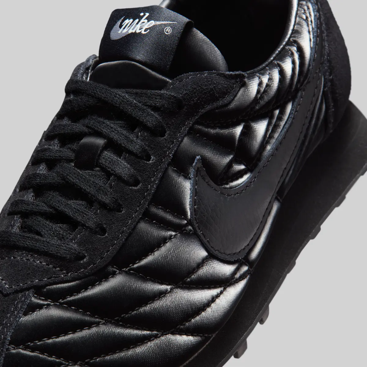 ナイキ LD-1000 “ブラック ソフトパール ダークグレー”はまず視線を奪うのがアッパーの仕立てです。ひし形のステッチで構成されたキルティング調のデザインはクラシックなランニングシューズの系譜を感じさせながらも現代的な感覚で再構築されています。