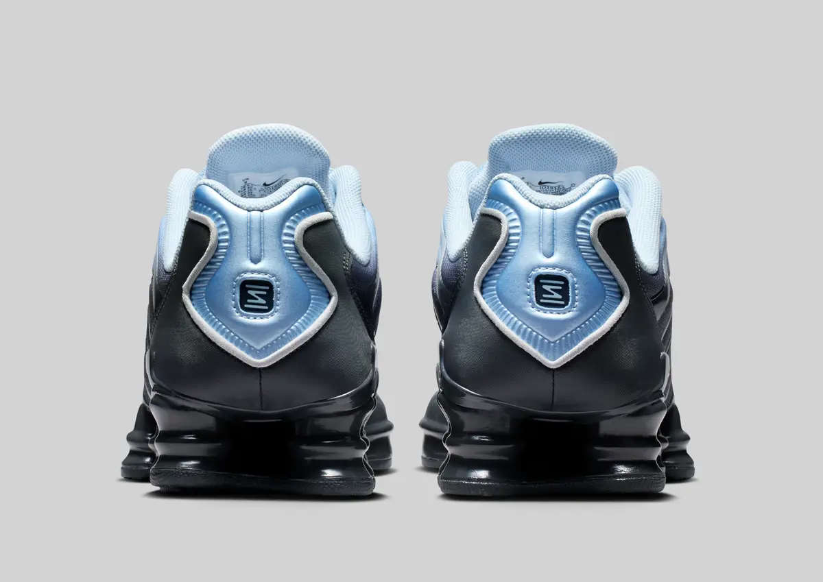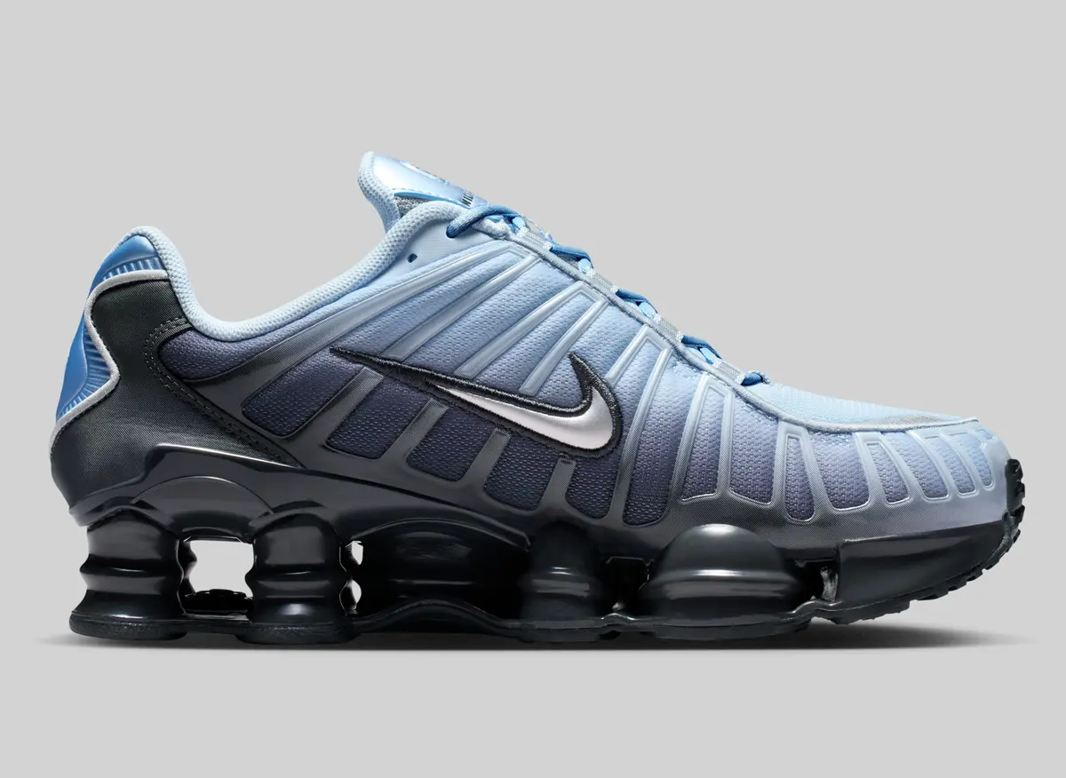 ナイキが誇る革新的なランニングシステムを体現したモデル「ナイキ ショックス TL アンスラサイト メタリックシルバー ライトアーモリーブルー」はひと目で強い印象を残すデザインに仕上げられています。
