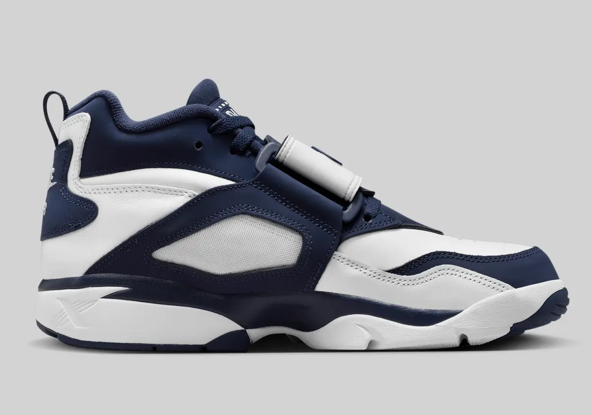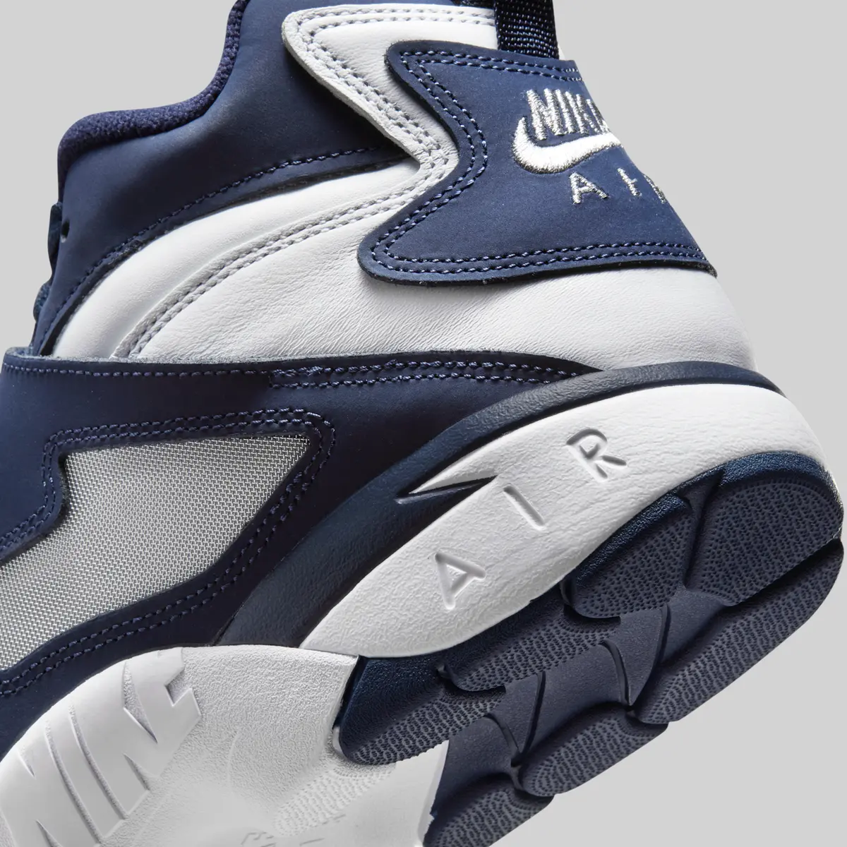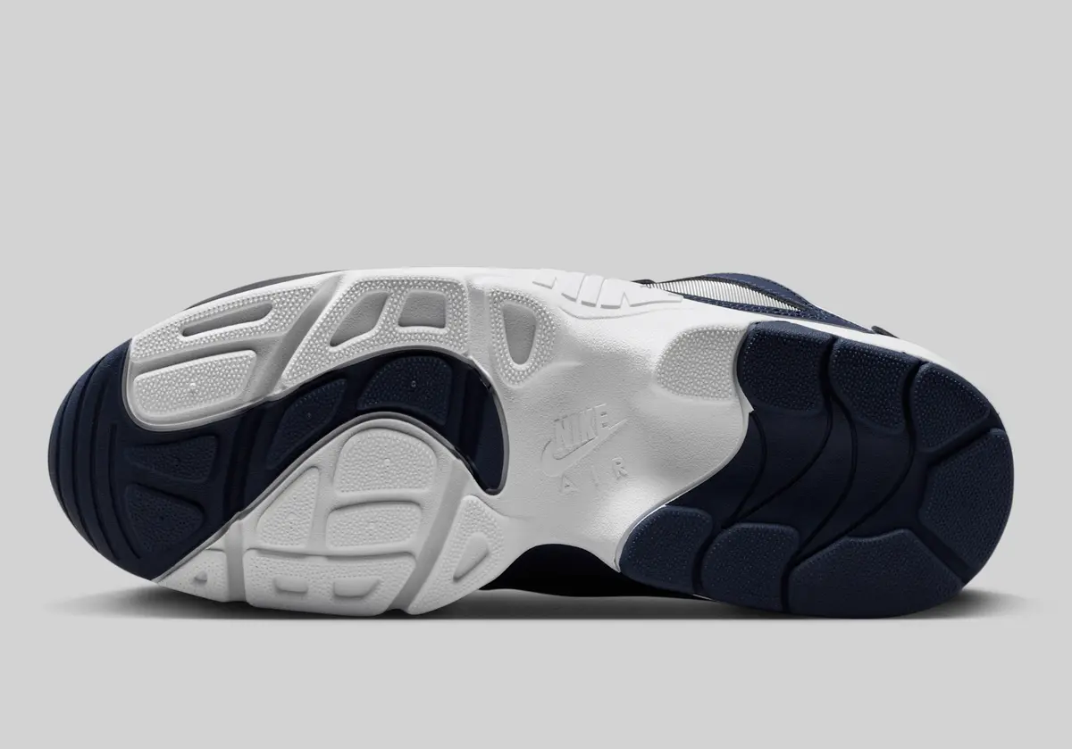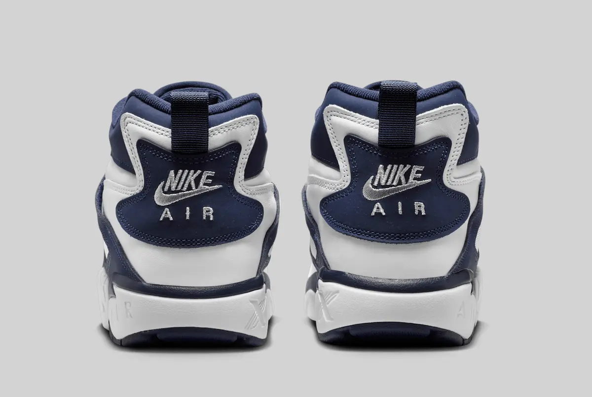 ヒールには「NIKE AIR」のロゴを力強く配置し肉厚なクッションがしっかりとしたホールド感を実現。アウトソールはホワイトとネイビーを巧みに組み合わせグリップ力と視覚的な躍動感を両立しています。全体のシルエットはボリュームがありながらもバランスが良くストリートでも存在感を発揮するスタイルに仕上がっています。