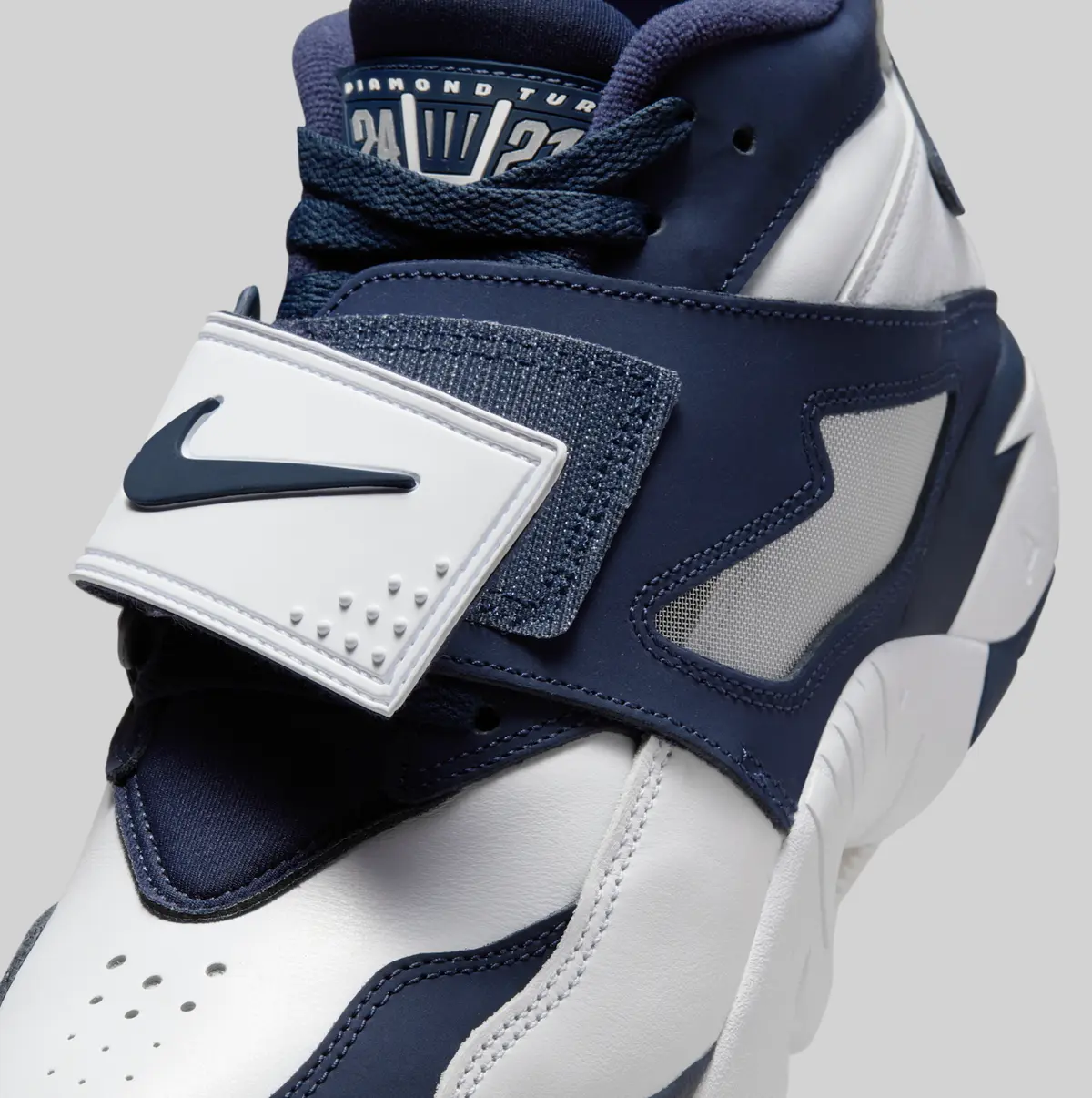 1990年代のクロストレーニングカルチャーを象徴する名作ナイキ エア ダイアモンド ターフが現代的な解釈をまとって再登場しました。ホワイトメタリックシルバーそして深みのあるカレッジネイビーを組み合わせたこのカラーリングはクールで端正な佇まいを放ちながらどこかチームスピリットを感じさせるような配色です。ダラス・カウボーイズを想起させるとも言われています。しかしその絶妙なトーンのバランスがアメリカンスポーツの空気を纏ったような存在感を生み出しています。