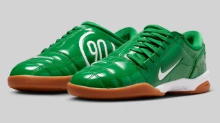 サイドに走るスウッシュはベアリーボルトの淡いグリーンで縁取られハロウィンナイトの月光を思わせる幻想的な輝きを添えています。外周を囲むブラックのラインがデザイン全体を引き締めオレンジの鮮やかさをより一層引き立てます。ソール部分は柔らかなベージュトーンで構成され上部の熱量を受け止めるように落ち着いたコントラストを描きます。アウトソールに配されたグリーンのパターンが暗闇に浮かぶキャンディのように軽快なアクセントを生み視覚的にも遊び心を感じさせます。