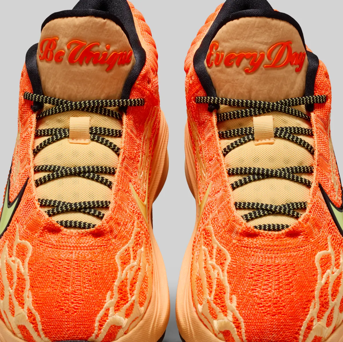 タンには「Be Unique」「Every Day」の文字が左右に配置され日々の中で自分らしくあることを象徴しています。そのメッセージがハロウィンが持つ“自由に変化する”というスピリットと自然に共鳴しデザイン全体のストーリー性を深めています。ブラックとオレンジを編み合わせたシューレースが全体をまとめ足元にリズムを刻むような印象を与えます。