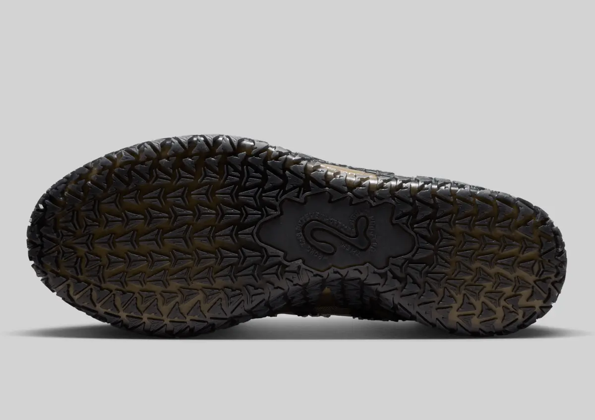 シルエットは軽量性と耐久性を両立したスマートな形状でパフォーマンスシューズらしい精密さが漂います。アウトソールには濃いガム調のラバーが配置され細かく刻まれたトラクションパターンが表面に広がっています。そこにはジャ・モラントを象徴するロゴが散りばめられディテールにまで個性が宿っています。