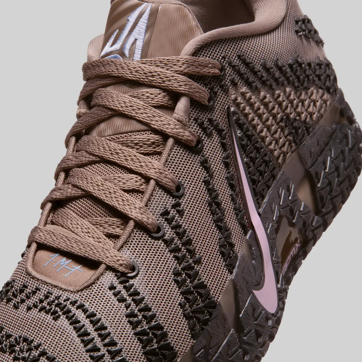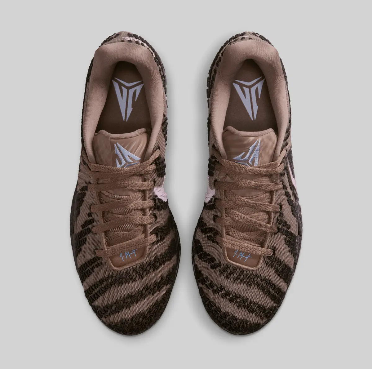 「ジャ 3 EP “ショーストッパー”」は視覚的な美しさと実用性を見事に融合させた一足です。ブラウンの重厚さとピンクの柔和さが交錯する配色精密なテクスチャーそして力強いディテールが一体となりバスケットボールシーンだけでなく日常のスタイルにも際立つ存在感をもたらします。