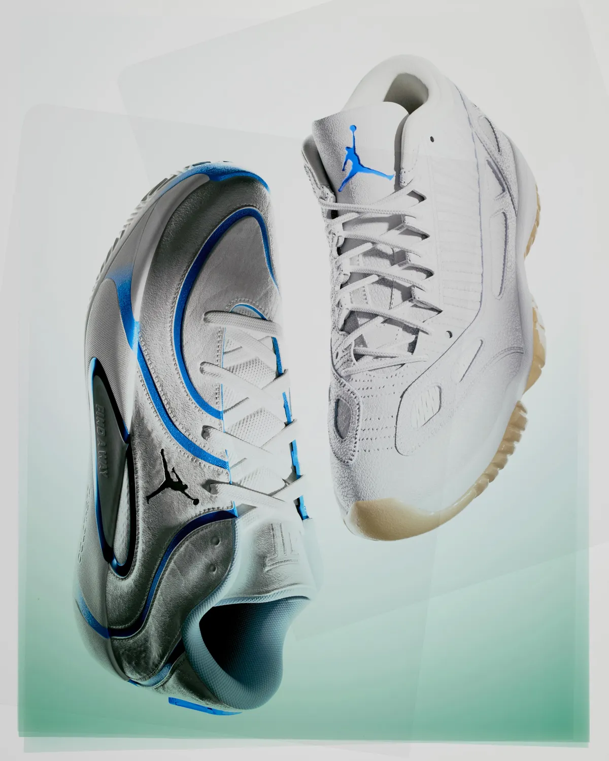テイタム 4は流線的なパネルデザインが特徴でエネルギッシュなラインが足の動きを引き立てます。細部には滑らかなステッチが走り通気孔の配置やヒールのカーブまで精密に設計されています。一方のエア ジョーダン レトロ 11 LOW IEはよりクラシカルな佇まいを保ちながらも現代的なバランスに再構築されています。ガムソールの淡いベージュがホワイトボディと絶妙に調和し履く者の足元に柔らかな存在感を添えます。両モデルに共通するジャンプマンのブルーエンブレムがまるで静寂を切り裂くように浮かび上がり全体の完成度を引き上げています。