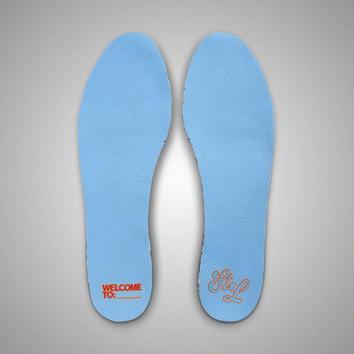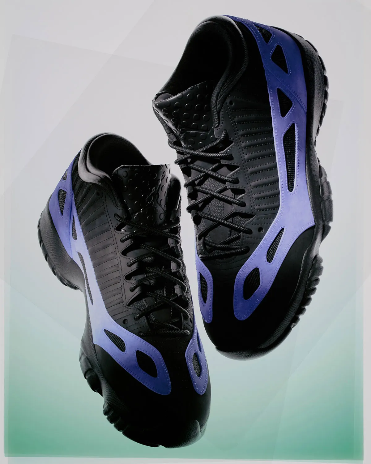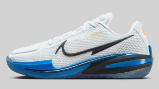 まず目を奪うのはその繊細に計算された色彩の調和です。クリーンなホワイトを基調に淡く輝くメタリックグレーが滑らかに重なりそこへ差し込む鮮烈なブルーがアクセントとして存在感を放ちます。角度を変えるたびに光がアッパーの立体感を際立たせシルエット全体に奥行きを与えています。素材にはマットなレザーと繊細なメッシュが組み合わされ柔らかさと強さのコントラストが巧みに表現されています。