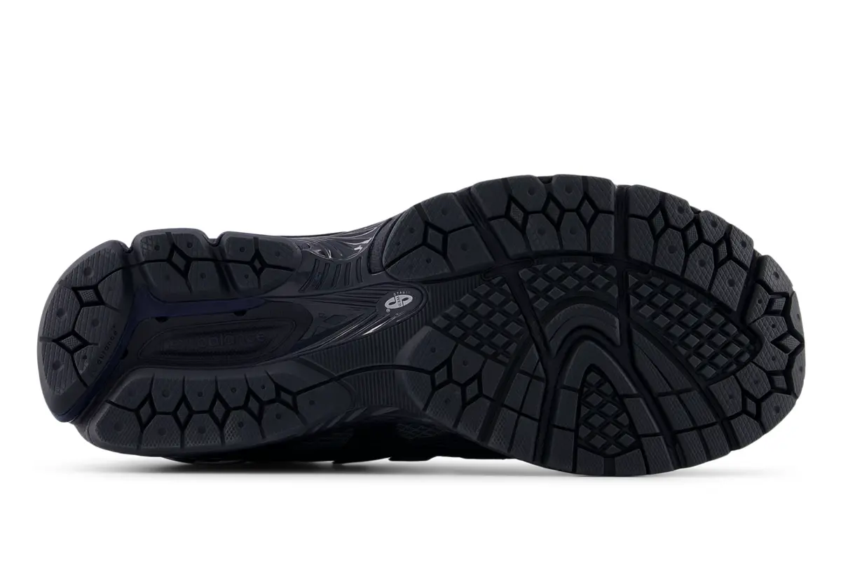 ソールユニットには柔軟性に優れたACTEVA LITEクッショニングと衝撃吸収性を高めるN-ergyテクノロジーを組み合わせたハイブリッド構造を採用しています。さらにヒール部分には分割型のABZORB SBSポッドを搭載し着地時の安定性と反発力を両立。視覚的にも印象的な多層構造のソールデザインは2000年代ランニングのテクノロジー精神を現代的に再解釈したものです。アンダーソールにはブラックラバーが配され耐久性とグリップ性能を確保しながら全体のダークトーンを美しくまとめ上げています。