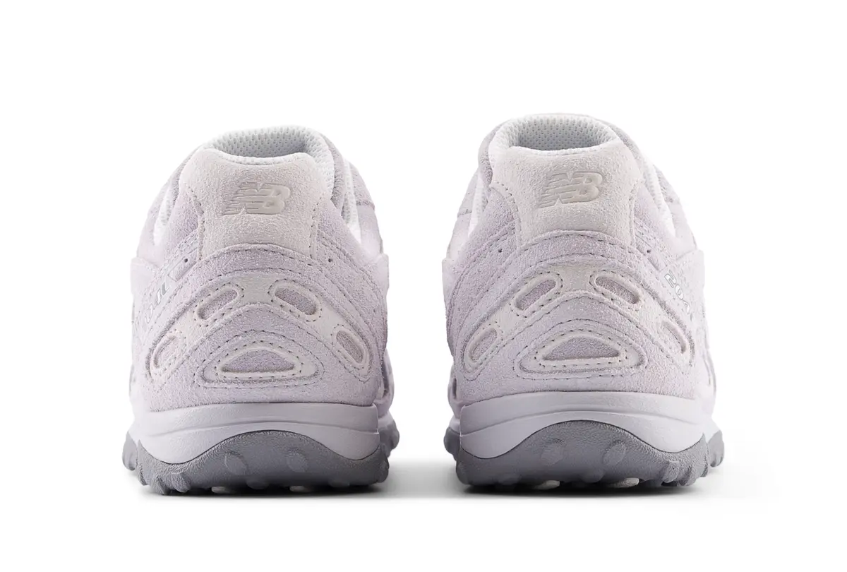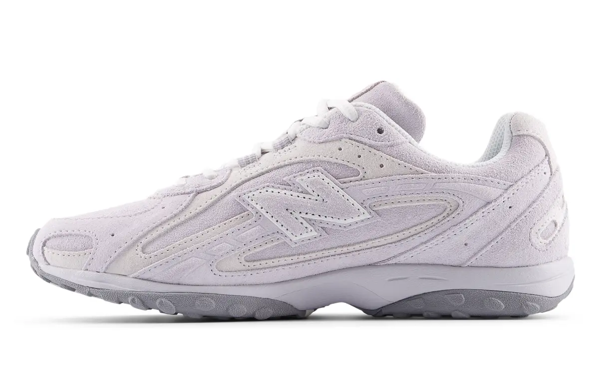 アッパーにはパールグレーをベースとした繊細なトーンが採用され全体に淡く柔らかな印象を与えます。メッシュ素材の通気性とスエードオーバーレイのしっとりとした質感が重なり合い上品で穏やかな陰影を生み出しています。縫製のラインは有機的でありながらシャープな構築を感じさせ軽快さの中に洗練された緊張感を漂わせています。