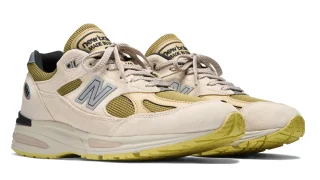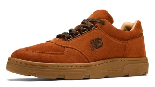 未来的なシルエットでありながら履き心地はクラシックな安定感を継承しています。ソールユニットのベージュトーンが上品に全体をまとめブラックアウトソールが足元を引き締めています。光の加減でスエードの質感が柔らかく変化し足元に表情をもたらします。