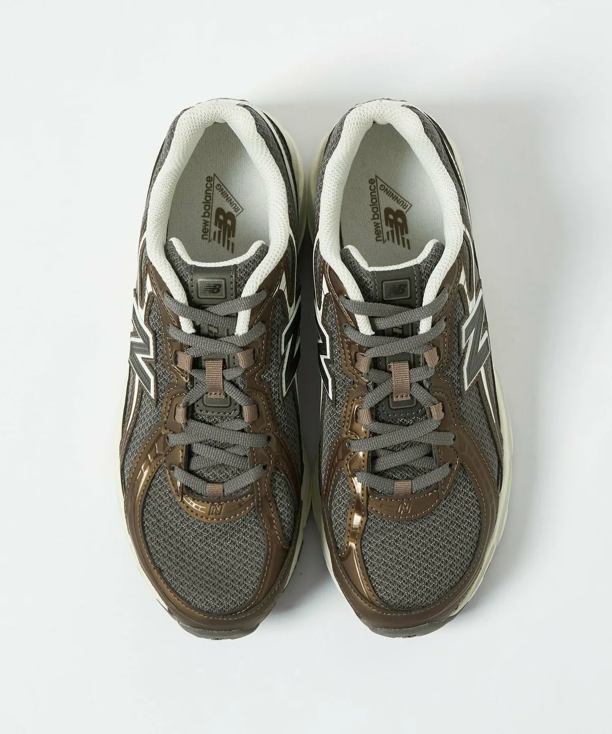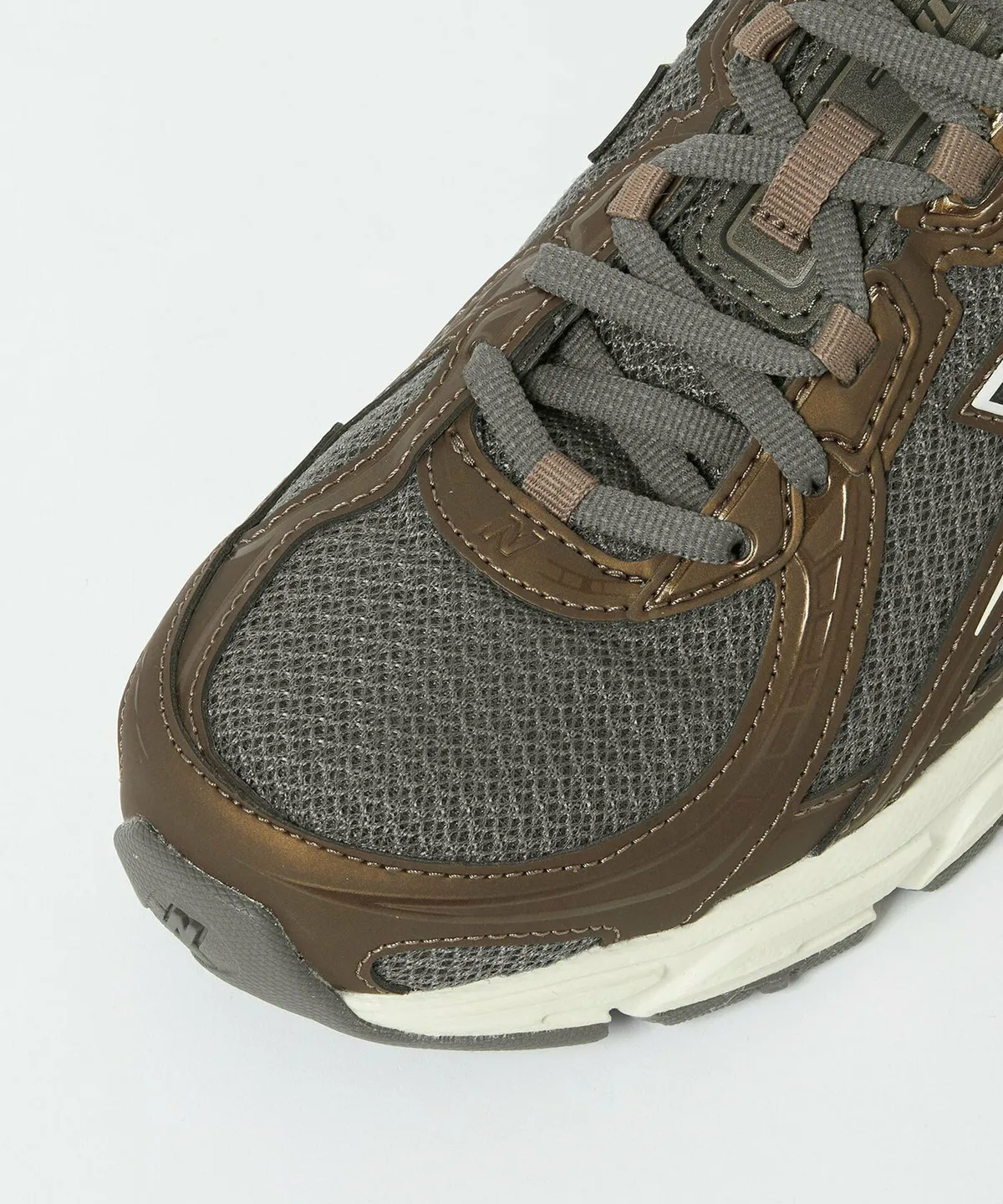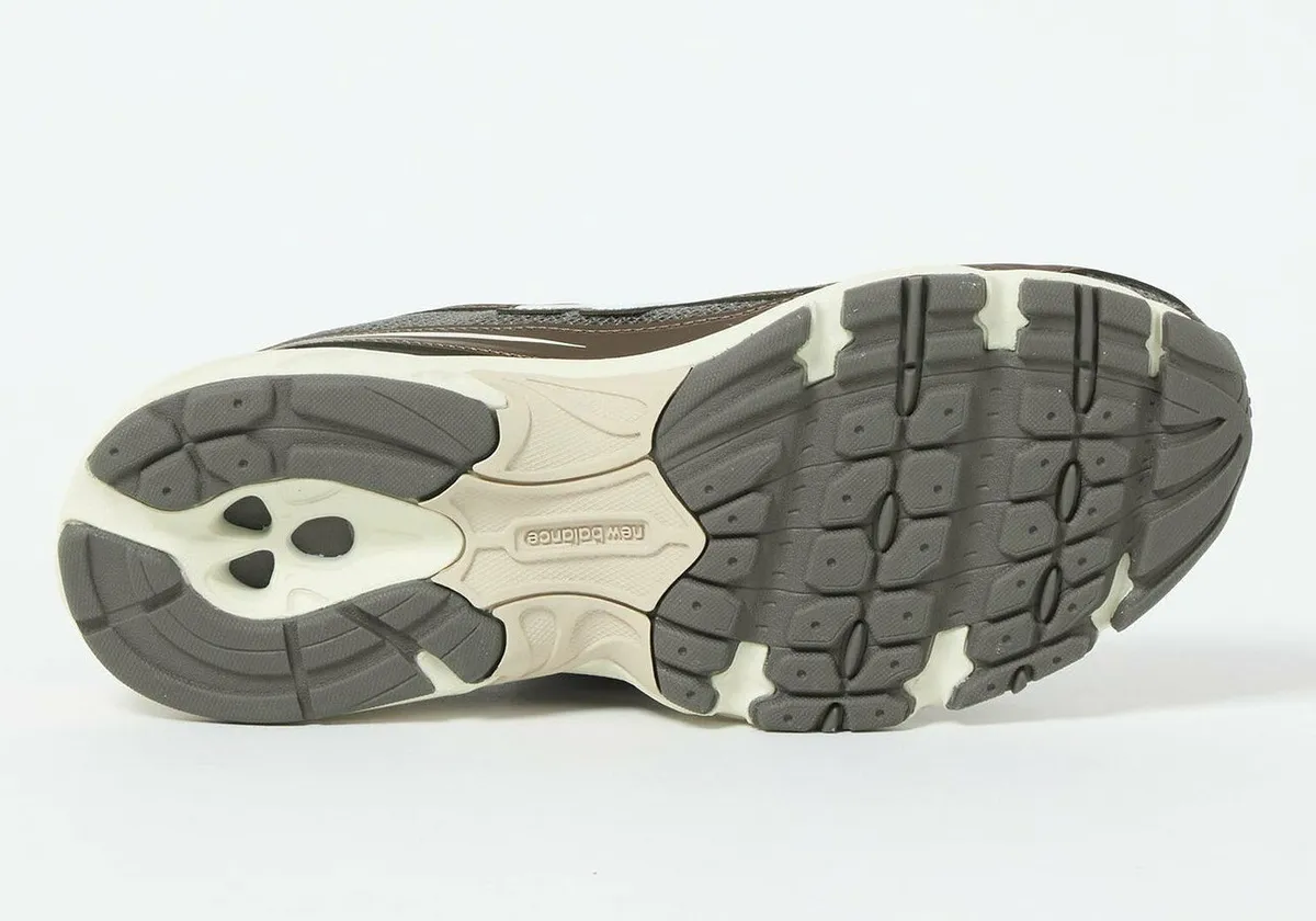 重厚でありながらも滑らかなラインを描くシルエットはアーカイブモデルの持つレトロな空気感を現代のバランス感覚で再定義しています。ベースとなるメッシュは細かな編み目が繊細な陰影を生み立体感のある表情を構築。ダークグレーを軸としたトーンは深みがあり上品な落ち着きを漂わせています。そこに重ねられたブラウンのスエードパネルが温度を加え異素材のコンビネーションによる奥行きを強調しています。メタリックなシルバーの「N」ロゴとステッチワークがアッパー全体に精密なアクセントを与え洗練された印象を際立たせています。