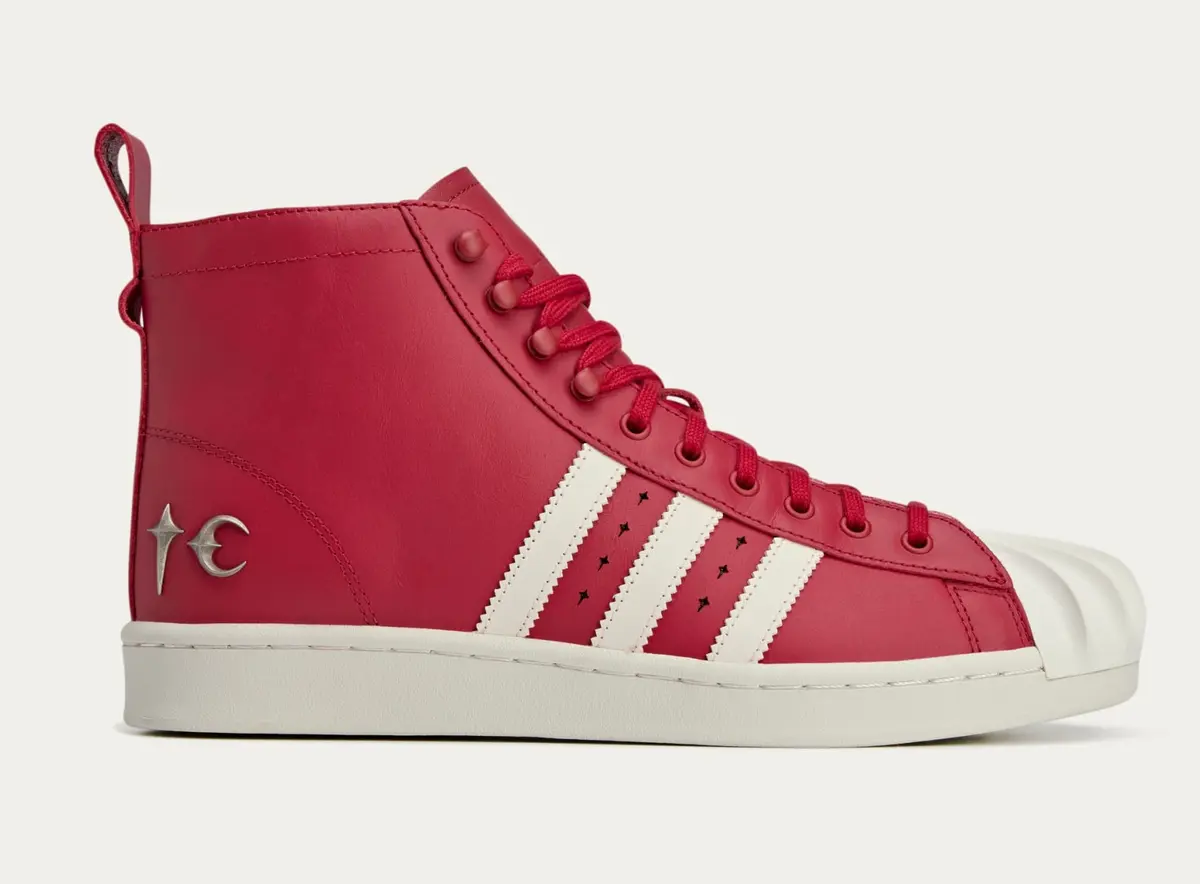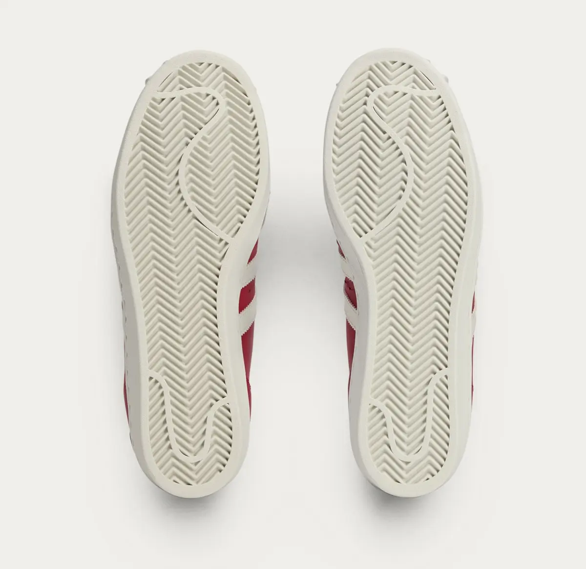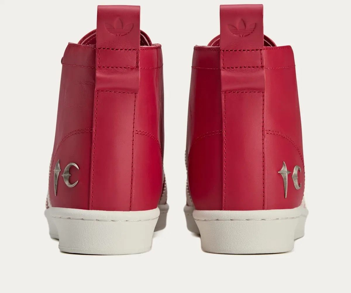 トゥにはアディダスを象徴するシェルトゥを継承しつつそのフォルムをやや誇張することで力強いシルエットを形成しています。サイドのスリーストライプスはレザーの張り感を活かした縫製で施されヒールには〈サグ クラブ〉のシンボルであるTCのメタルモチーフが光を反射します。わずかに厚めのソールが全体の重心を安定させ足首を包み込むようなハイトップのラインがブーツらしい存在感を際立たせています。ラバーアウトソールにはクラシックなヘリンボーンパターンが刻まれ確かなグリップ力を発揮します。