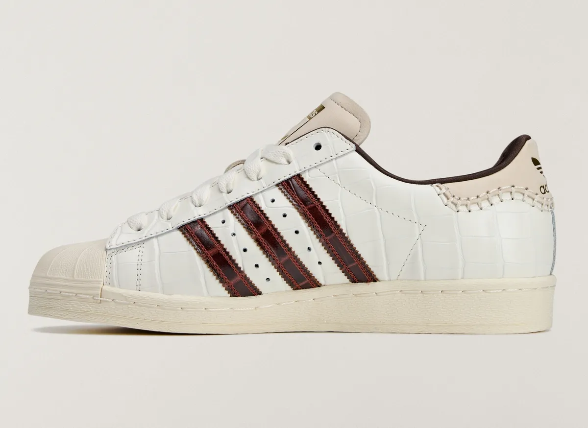 ウェールズ・ボナーとアディダスコレクションは「伝統と現代ファッションの融合」をテーマに掲げヒップホップカルチャーとロマンティシズムへの敬意をデザインで表現しています。その理念はこのスーパースターの素材選びと色彩のバランスに凝縮されています。過去のスタイルをただ再現するのではなく文化の記憶を繊細に紡ぎ直すようなアプローチが貫かれています。