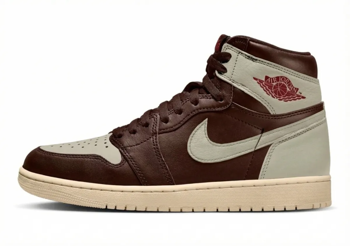 2026年秋発売予定のエア ジョーダン 1 レトロ HIGH OG シャドウブラウン ソフトパールは重厚な配色が織り込まれた端正な佇まいを見せます。