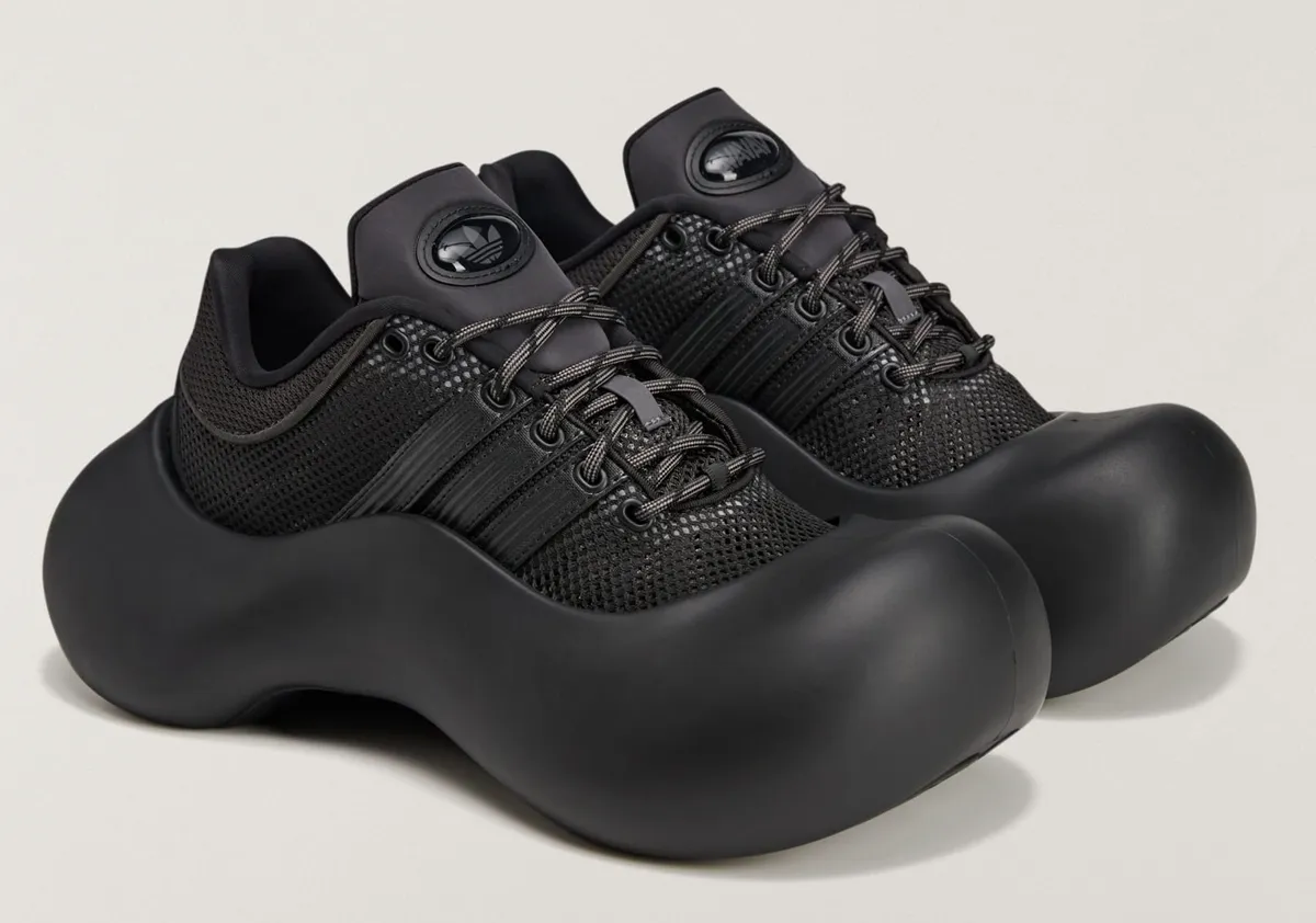 アヴァヴァヴとアディダス オリジナルスによるコラボレーションモデル「バブル GB コアブラック」はファッションと造形の境界を軽やかに越える一足です。アヴァヴァヴ特有のユーモラスで挑発的なデザイン精神とアディダスが培ってきた機能美が交差することで従来のスニーカー像を刷新する存在となっています。