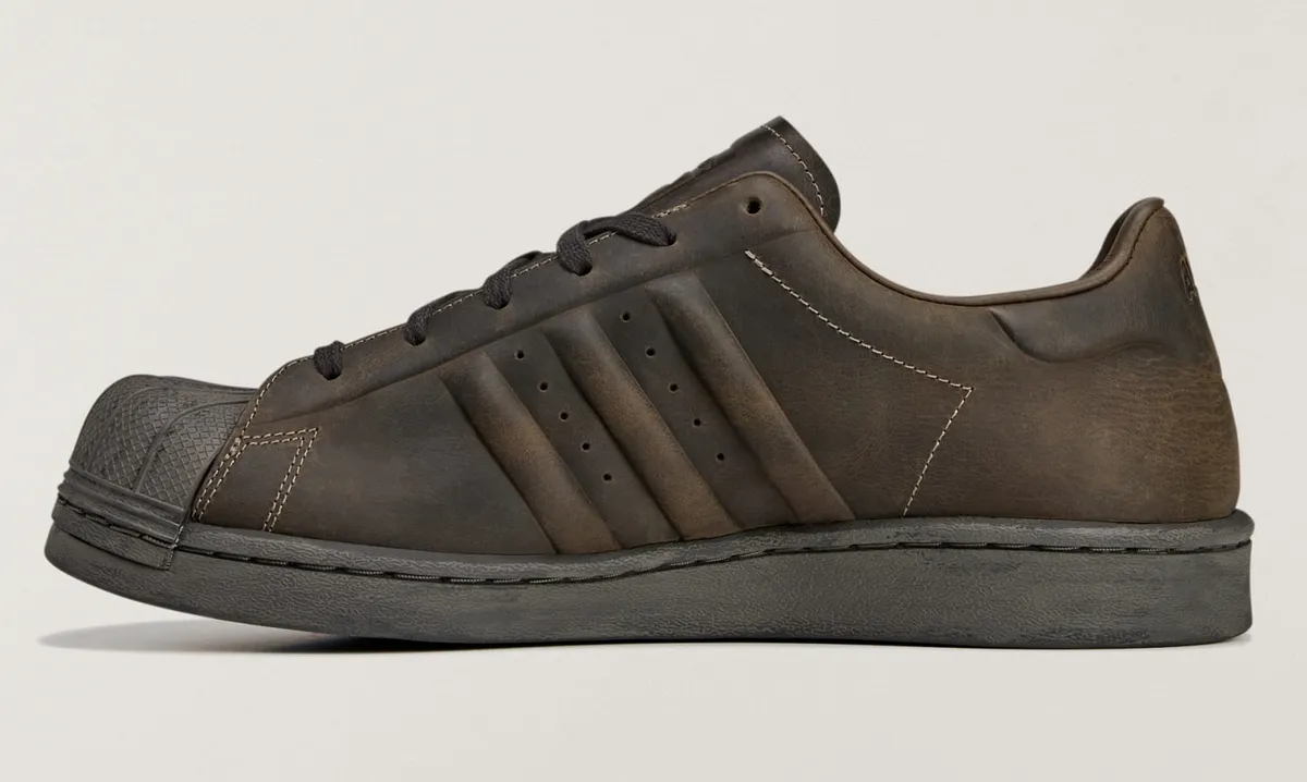 サイドに刻まれた「SUPERSTAR」の刻印は角度によってさりげなく浮かび上がりクラシックとモードの狭間にある本作の位置づけを象徴します。ヒールに配されたトレフォイルロゴも同色で統一され主張を抑えながらも確固たるブランドの自負を感じさせます。レースやアイレットまでもが深いブラウンで染め上げられ装飾を極限まで削ぎ落としたことで素材と形そのものが語り始めます。