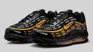 鮮やかなネオターコイズのフライニットアッパーが複雑に編み込まれた繊維の陰影を通して流動的な表情を生み光の移ろいとともに織りの奥行きを際立たせます。その上を走るスウッシュはボルトグリーンの鮮烈な輝きを放ちターコイズの海原に閃光が走るようなコントラストを描きます。タンやアイレットにも同色のアクセントが重ねられ視線を自然に引き寄せる構成です。