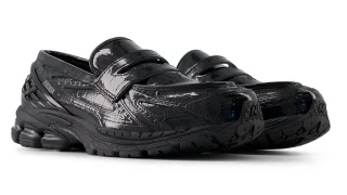 足を包み込むインナーフィットは柔らかくそれでいて芯のある保持感を与えます。ソールの弾性と相まって歩行時に滑らかな推進力が生まれ長時間の着用でも疲れを感じさせません。全身をブラックで統一することで服装のジャンルを問わず調和しストリートからナイトシーンまで自然に溶け込みます。光を吸い込むような深い黒が時間帯や照明の質によって異なる表情を見せるのもこのモデルの魅力です。