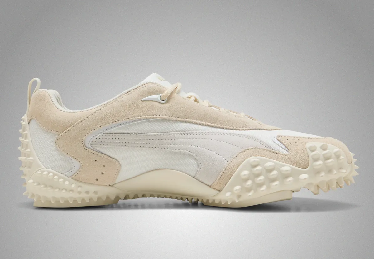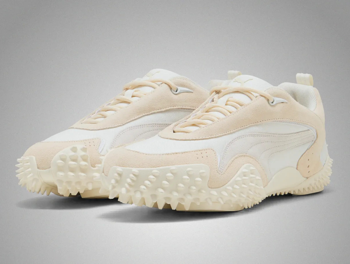 「プーマ モストロ XC プライム ウォームホワイト」は穏やかな色調の中に研ぎ澄まされた造形美を宿した一足です。