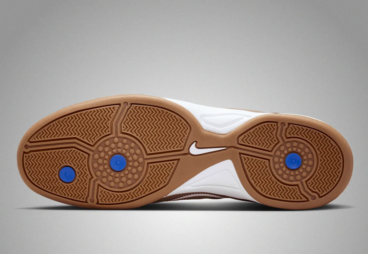 ソールはホワイトを基調にしながら接地面にはガムラバーを採用し温かみのあるトーンがアッパーのブラウンと調和します。アウトソールの中央に差し込まれたレーサーブルーのパーツは全体の穏やかな配色に鮮度を注ぎ込む小さな焦点となりシューズの底面に思いがけない魅力をもたらします。