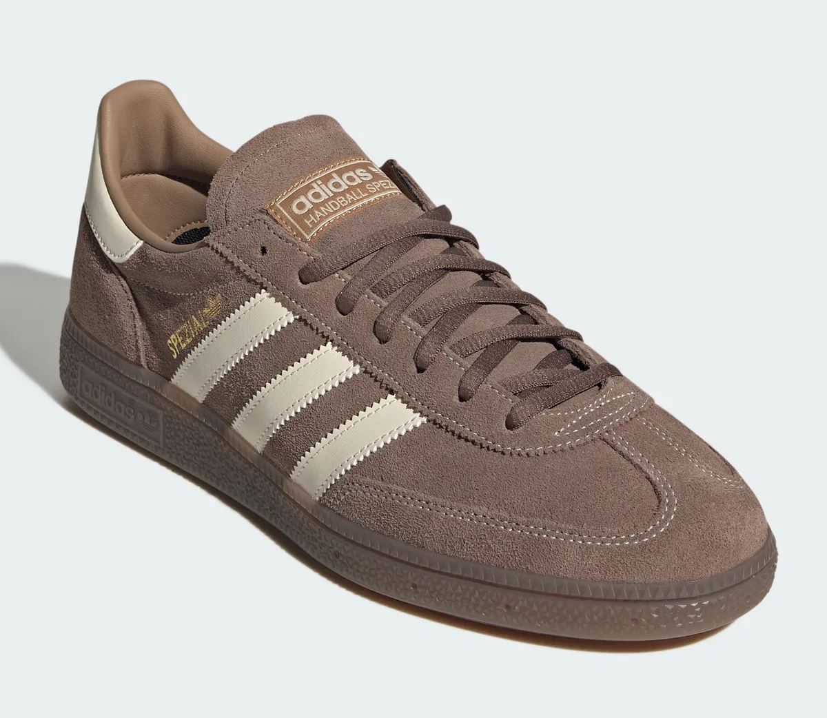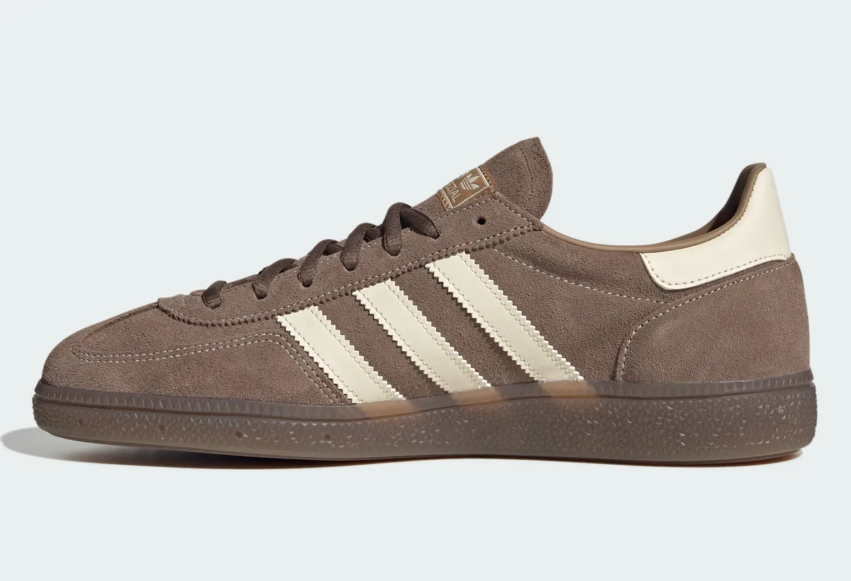アディダス オリジナルス ハンドボール スペツィアルは視覚的な美しさと伝統的なデザインが特徴の一足。本モデルはアースストラータ/ワンダーホワイト/ガムというカラーバリエーションで展開されており落ち着いた色味が引き立つ組み合わせとなっています。