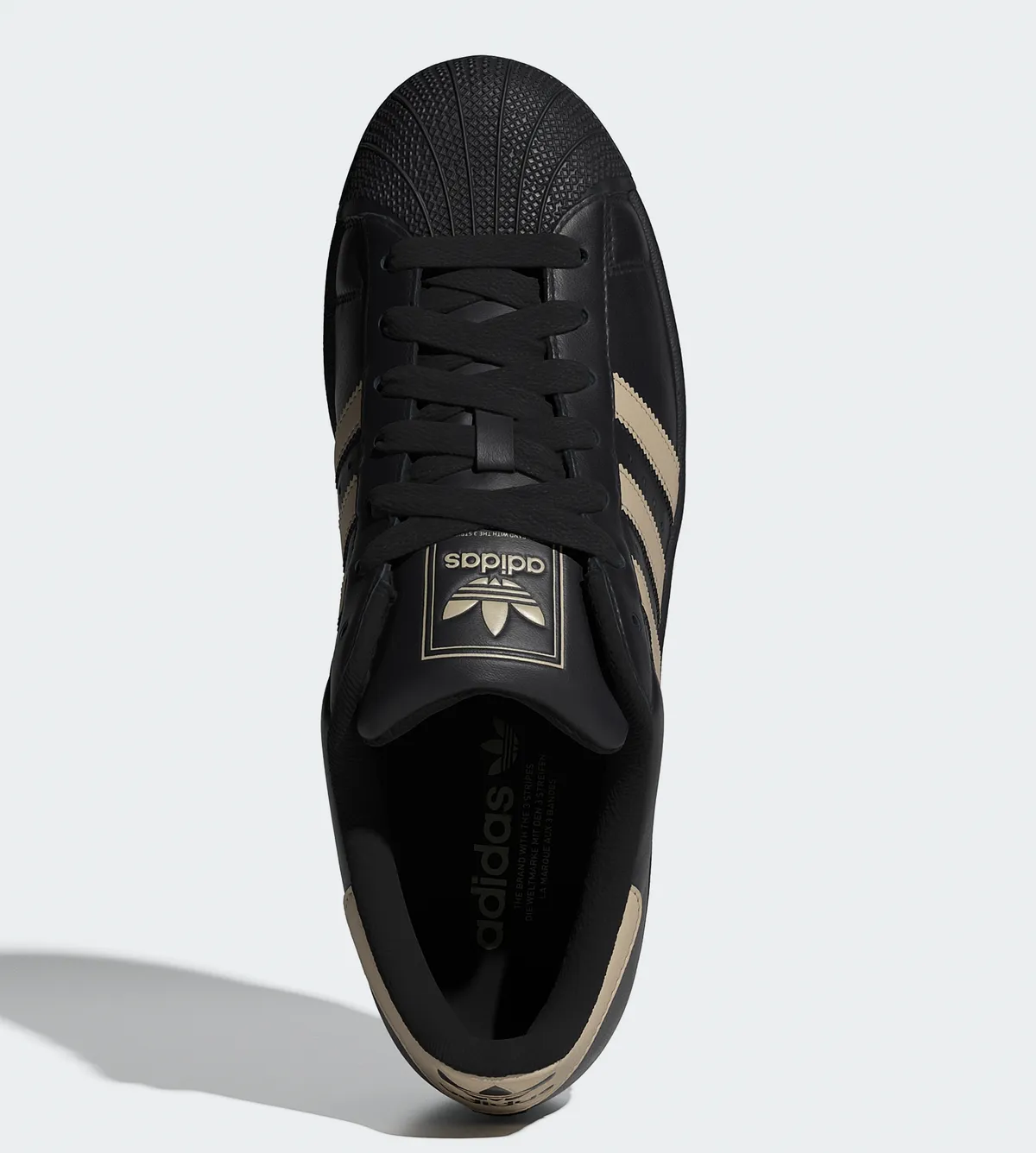 背筋を正すような気品とクラシックな存在感を兼ね備えた「アディダス オリジナルス スーパースター II コアブラック ストーンカーキ コアブラック」はストリートシーンの定番アイテムにふさわしい仕上。