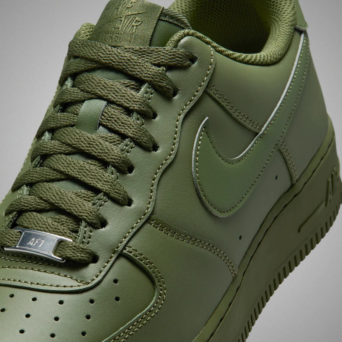 ナイキ エア フォース 1シリーズは1982年に初登場し以来ストリートシーンやスポーツの枠を超えて支持されています。特にこの’07モデルはオリジナルの意匠を保ちつつ現代的な改良が加えられています。アーミーオリーブのカラーリングは多くの世代のスニーカーファンに支持される理由でもあります。ミリタリー要素を取り入れながら日常の装いの中でも自然に溶け込む魅力が光ります。