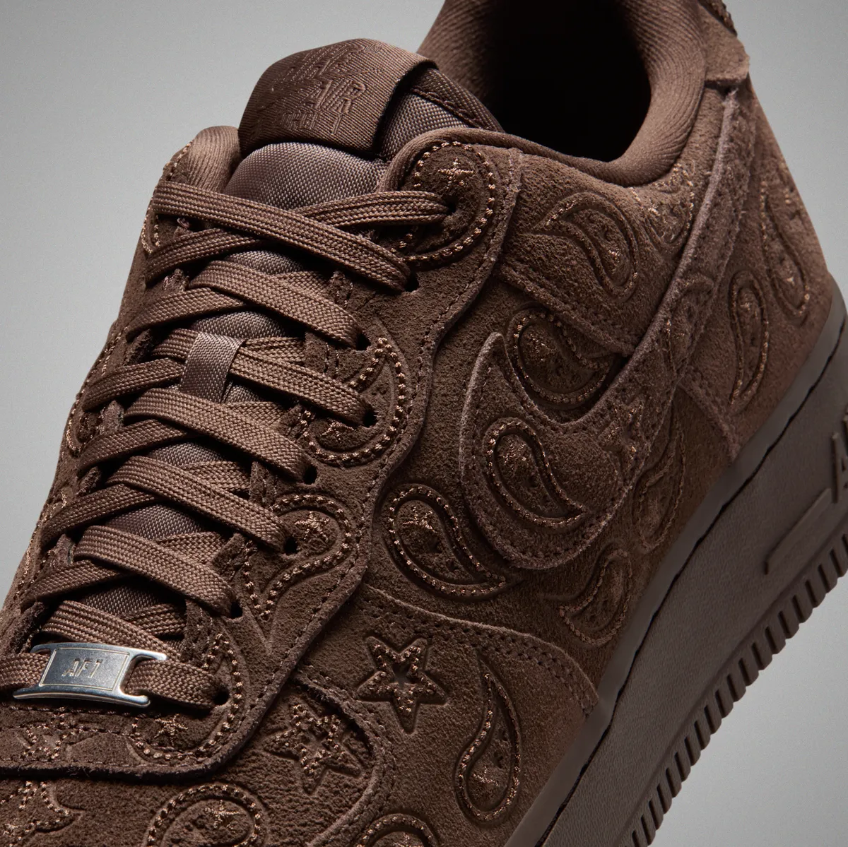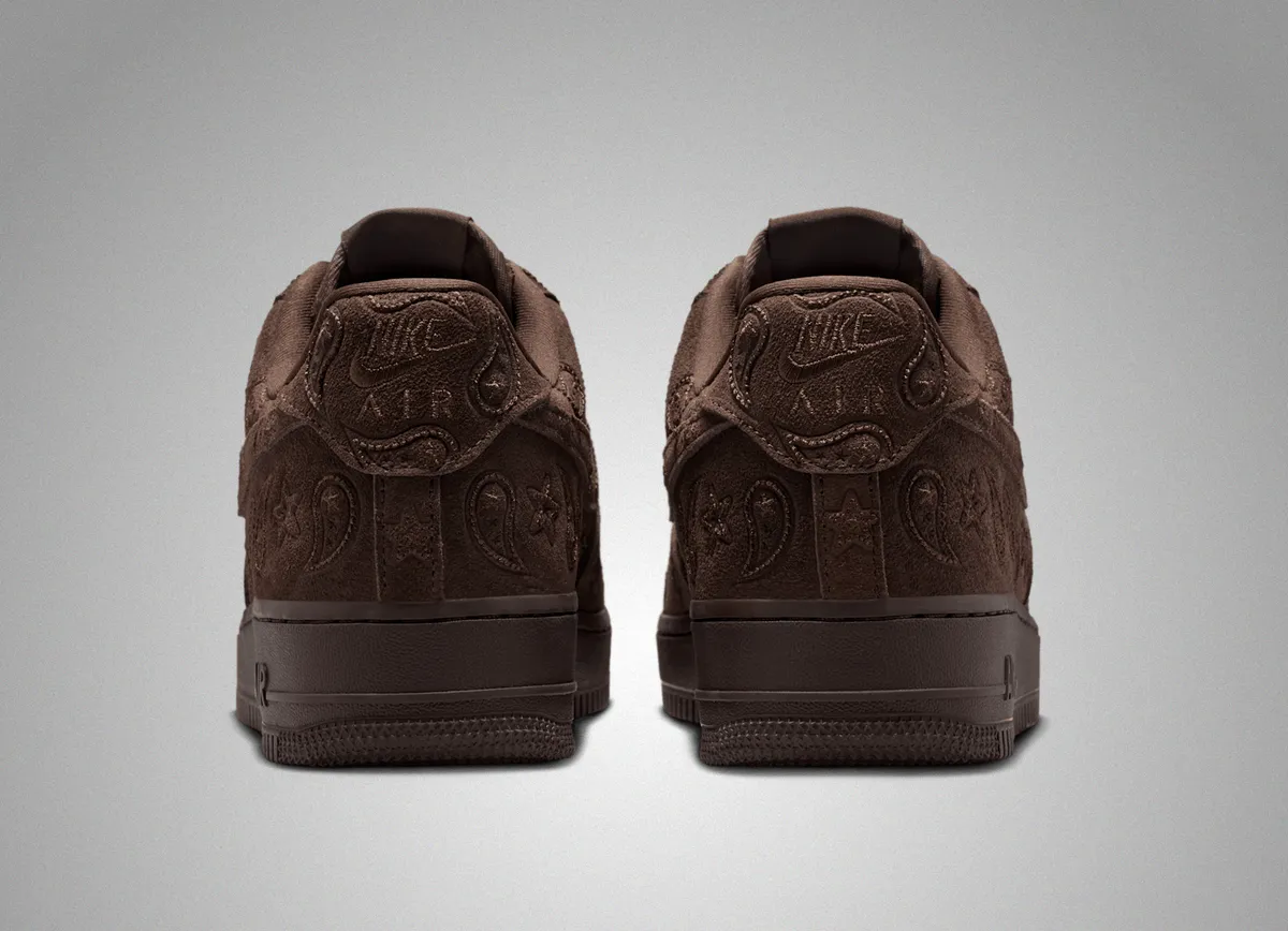 バロックブラウンの落ち着きある色合いとペイズリー刺繍が日常使いやストリートファッションで魅力的に映えるこのスニーカー。手に取った瞬間からその特別感を感じられることでしょう。鑑賞するほど深みを楽しむことができる一足でありながら履いてこそその真価が発揮されます。ナイキ エア フォース 1 ’07 LV8 ペイズリーは時代を超えたデザインの美しさを纏いながら現代にしっかりと根付いた魅力を持つ一足です
