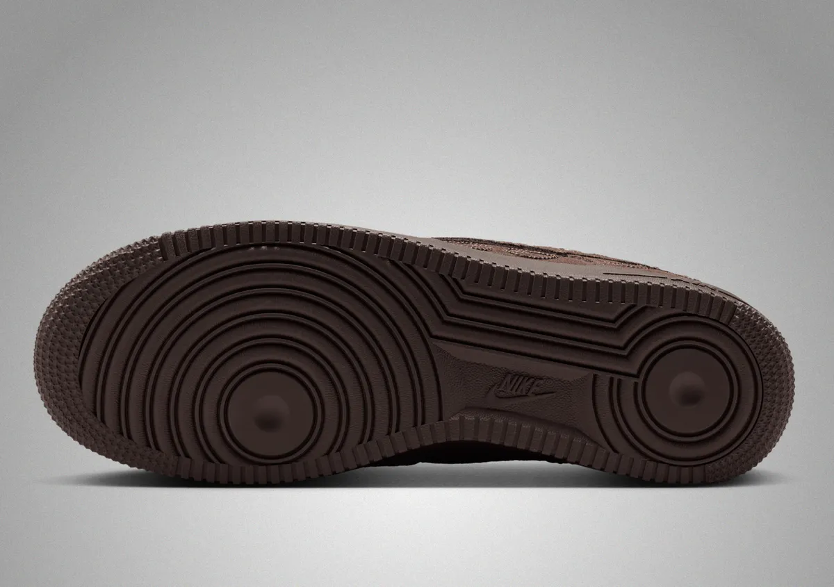 カラーリングには重厚でありながらニュートラルなバロックブラウンが採用されています。この色合いは都会のストリートスタイルにも自然に溶け込む汎用性を備える一方で高いファッション性を発揮します。ソール部分もアッパー同様にバロックブラウンで統一されており全体のシームレスな仕上がりに寄与しています。アウトソールのデザインはクラシックなエア フォース 1のパターンを踏襲しつつカラーの統一感を保ち視覚的な調和を生み出しています。ラバー素材のグリップも健在で耐久性や快適性を確保しています。