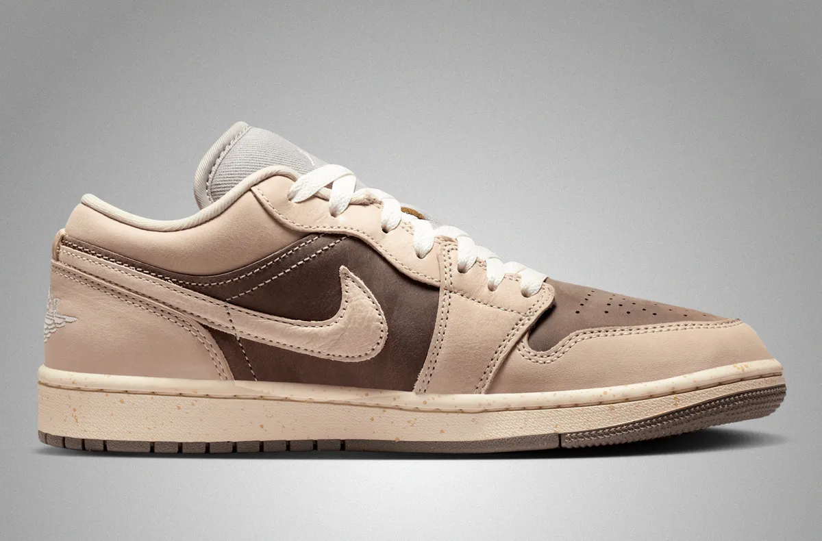 エア ジョーダン 1 LOW SE エニグマストーン ペールアイボリー ヘンプ オートミールは淡い砂地を思わせる柔和な配色を軸に落ち着いた陰影が重なり合うような表情を引き出した一足です。