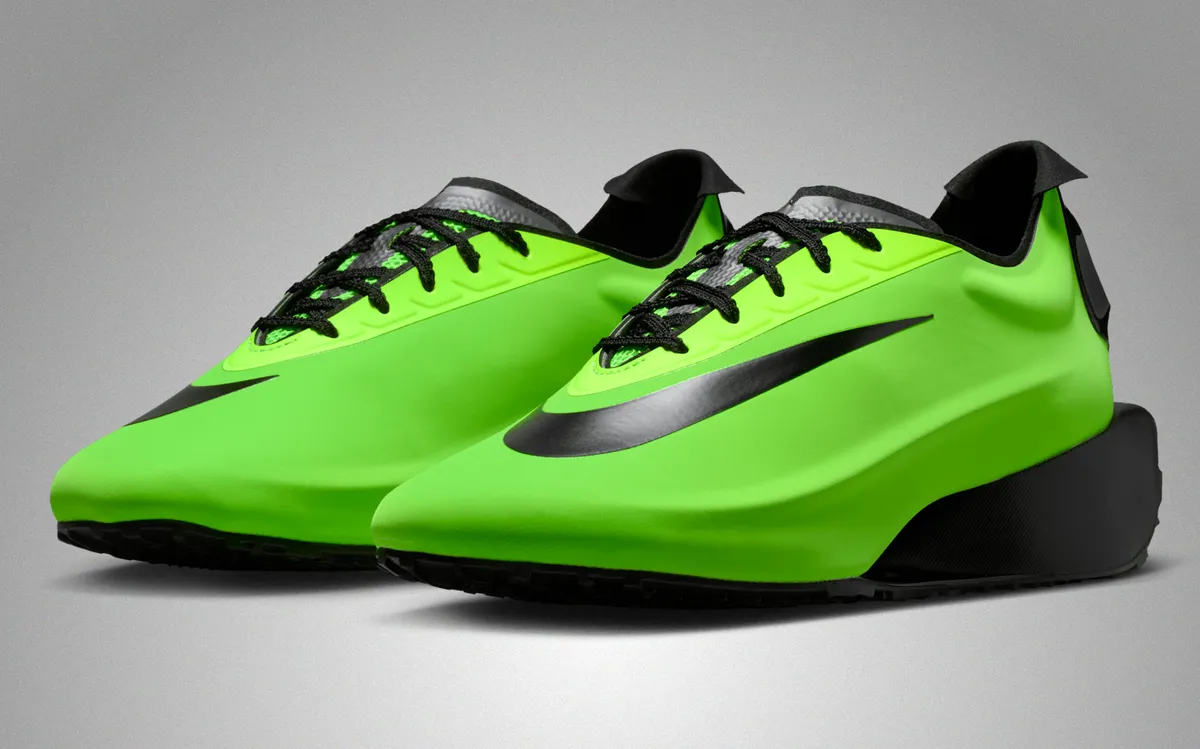 ナイキ ファースト サイト ラン エレクトリックグリーン ブラックは鮮烈なエレクトリックグリーンをまとう独特のシルエットが印象的で視界に飛び込んだ瞬間からエネルギーが波紋のように広がる佇まいを備えた一足。