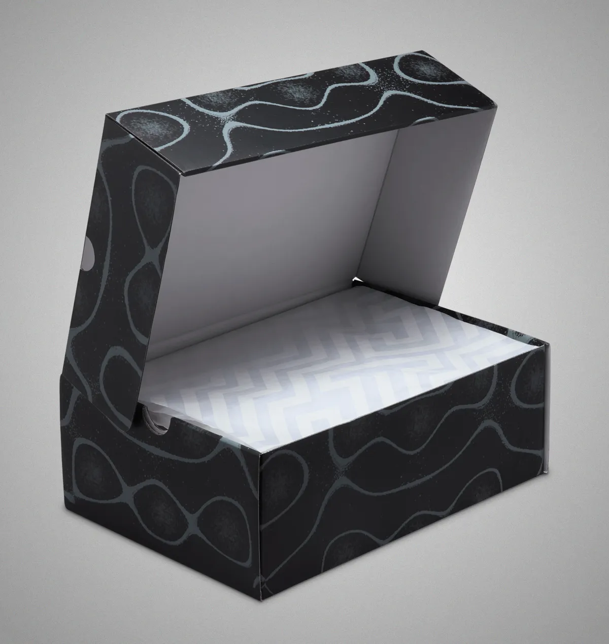 その周囲を取り巻くホワイトのサイドパネルは流線的なカーブを描きながらフレームのように配置され内部が透けるように開かれたオーバル形のウィンドウが未来的な印象を強めています。ピンクスィクルのアウトソールは鮮やかでサイドから覗く凹凸のラインが強い存在感を放ち足裏のヘリンボーンパターンが動きへの追従性を語っています。