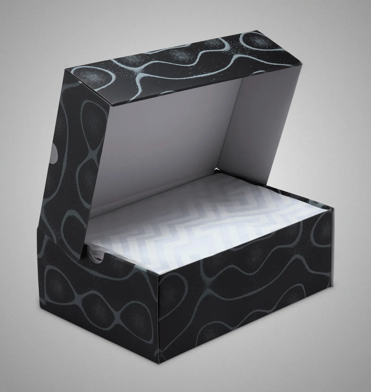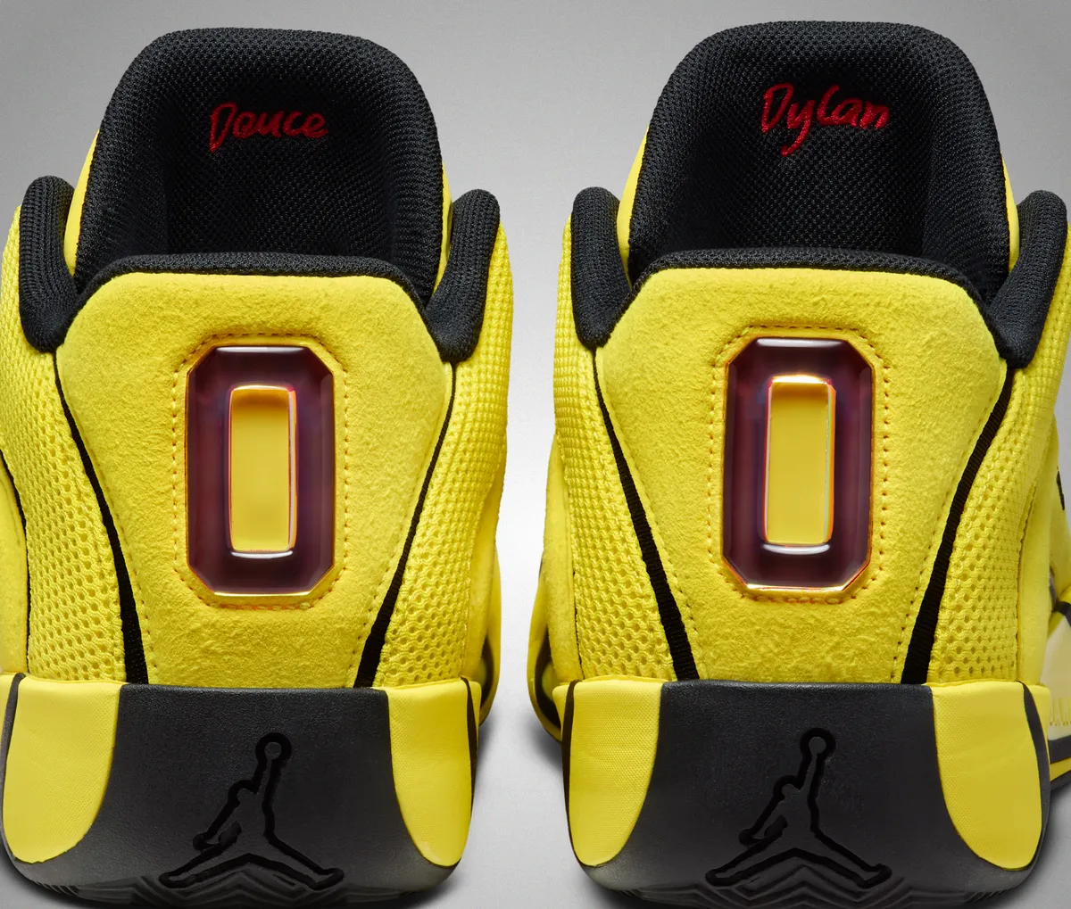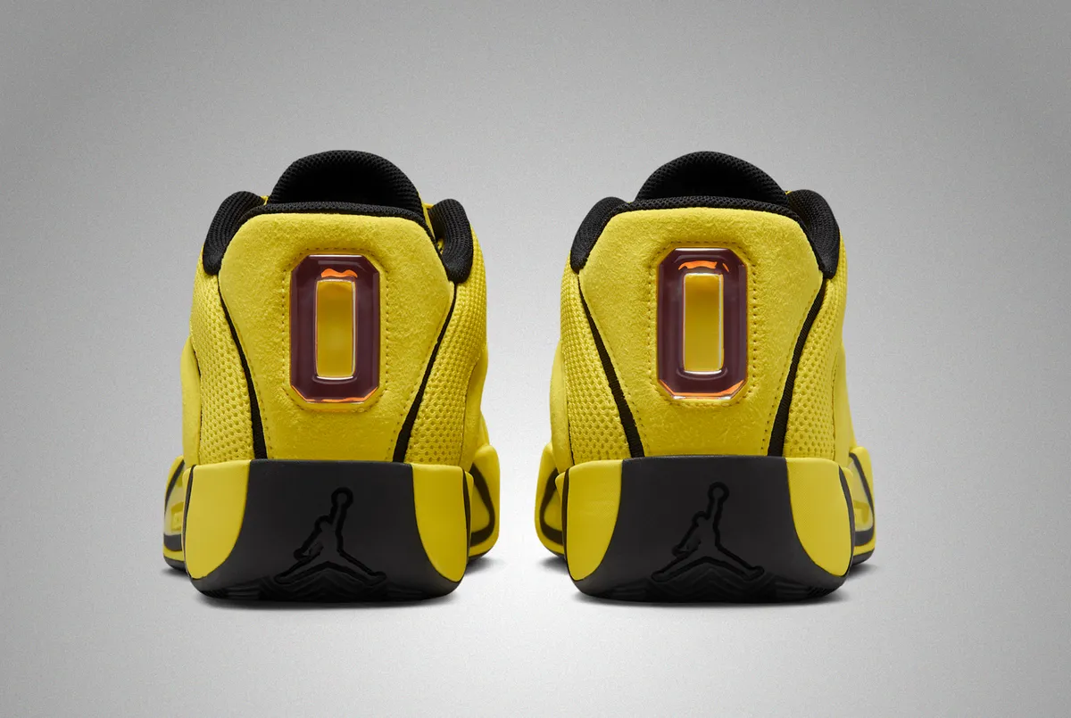 アウトソールはブラックとレッドが層を成し中央部の模様は波紋のような構造体で踏み込んだ際のエネルギーが外へ広がるイメージを喚起します。横から眺めるとソール全体の起伏が滑らかに続き軽快なプロポーションがテイタムらしい俊敏な動きを連想させます。付属のシューレースはイエローとレッドの2本が用意され足元の印象を自在に変えられる遊び心も備えています。シューズボックスは落ち着いたブラックに円形パターンが散りばめられ外観の鮮烈さとは対照的な静かな佇まいでモデルの存在感を引き締めています。