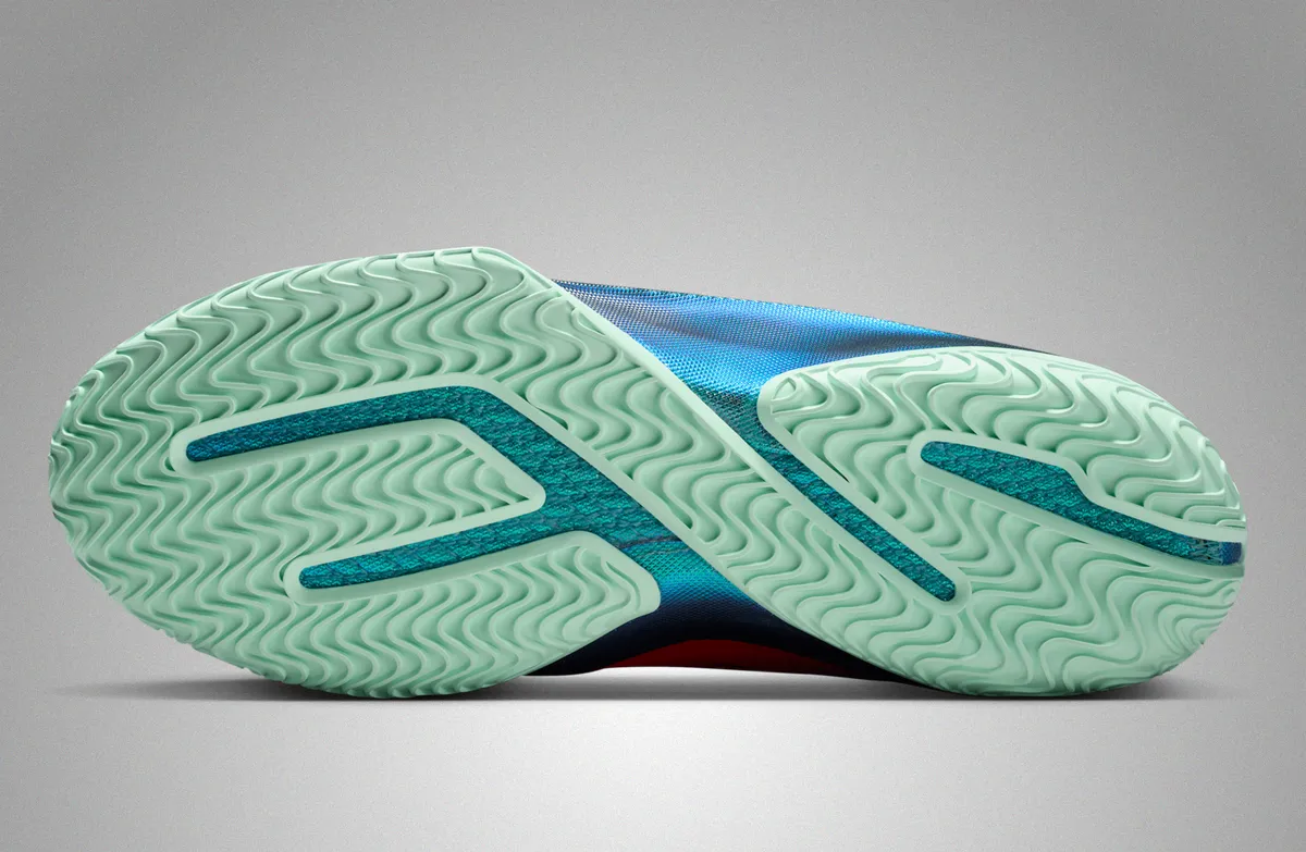 ミッドソールにはフルレングスのズームXドロップインフォームを搭載し軽快さを感じさせる外観と呼応するように内部構造も無駄を削ぎ落とした印象です。カーボンファイバープレートが内蔵され急激な切り返しや踏み込みの瞬間にも足元の安定感を保ちます。アウトソールは耐久性の高いラバー素材で構成され粘りのある多方向トラクションパターンが視覚的な躍動と機能性を両立させています。ヒール周辺のブーティーライニングは厚みを抑えつつも包み込むような造形で全体のシルエットを引き締めながら安心感のある後ろ姿を完成させています。