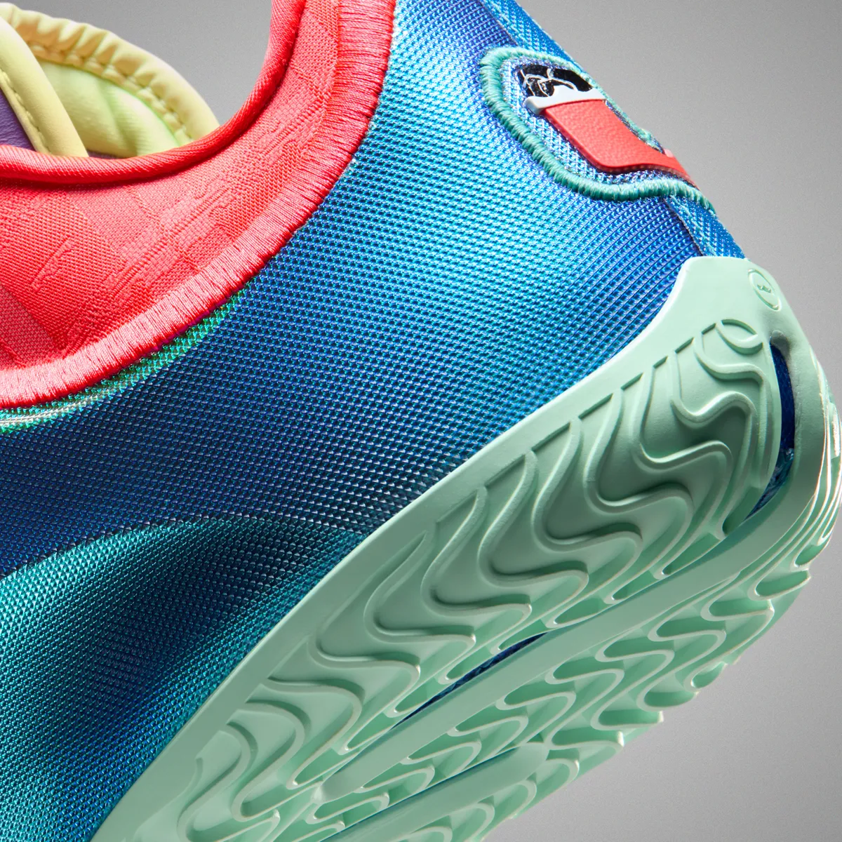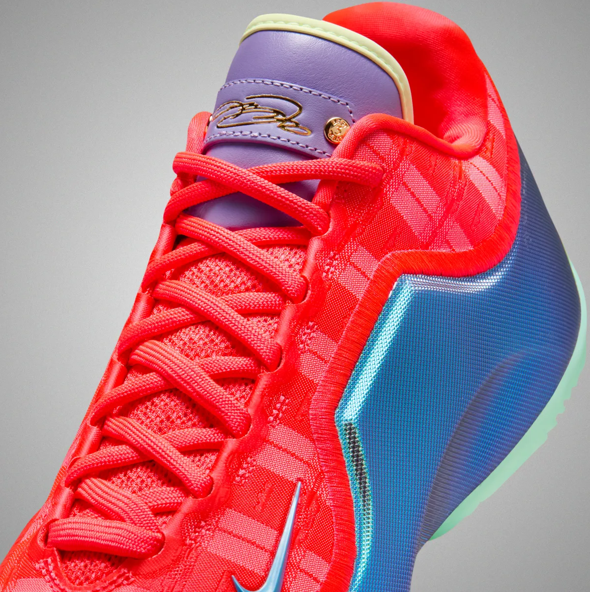 このモデルは華やかさだけで完結せず細部に潜む配色や素材の重なりによって見る者の記憶に残るモデル、祝祭の高揚と競技用シューズの緊張感が自然に溶け合い鑑賞する時間そのものが豊かになる一足です。