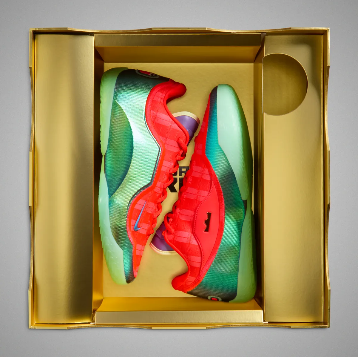 レブロン・ジェームズが20年以上にわたり積み重ねてきたキャリアの中でレブロン 23は現代バスケットボールの速度と強度に応えるための進化形として位置付けられています。「ストッキング スタッファー」というテーマはクリスマスデーに常に特別な瞬間を生み出してきた存在へのオマージュでありその物語性がデザイン全体に静かに息づいています。