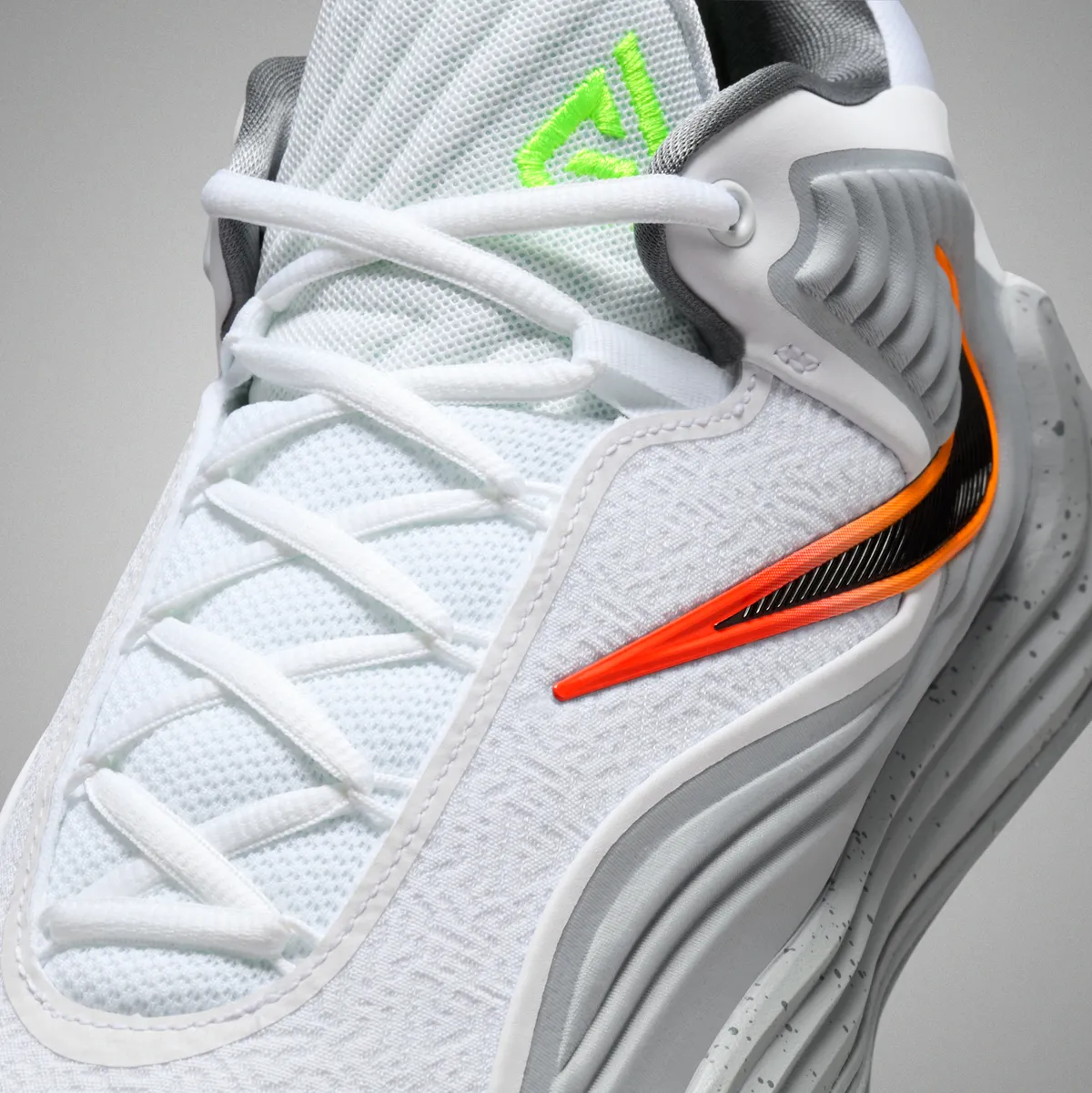 ヤニス フリーク 7 EPは競技者のための道具としてのストイックさと視覚的な美しさを高いレベルで両立させています。清涼感のある白と重厚なグレーそして鋭いオレンジの火花が散るようなデザインは多くファンの心に深く残るカラーリング。コート上での激しいパフォーマンスに耐えうる堅牢な構造と見る者を飽きさせない精緻なディテールが共存しており一足のシューズの中に多様な魅力が凝縮されています。